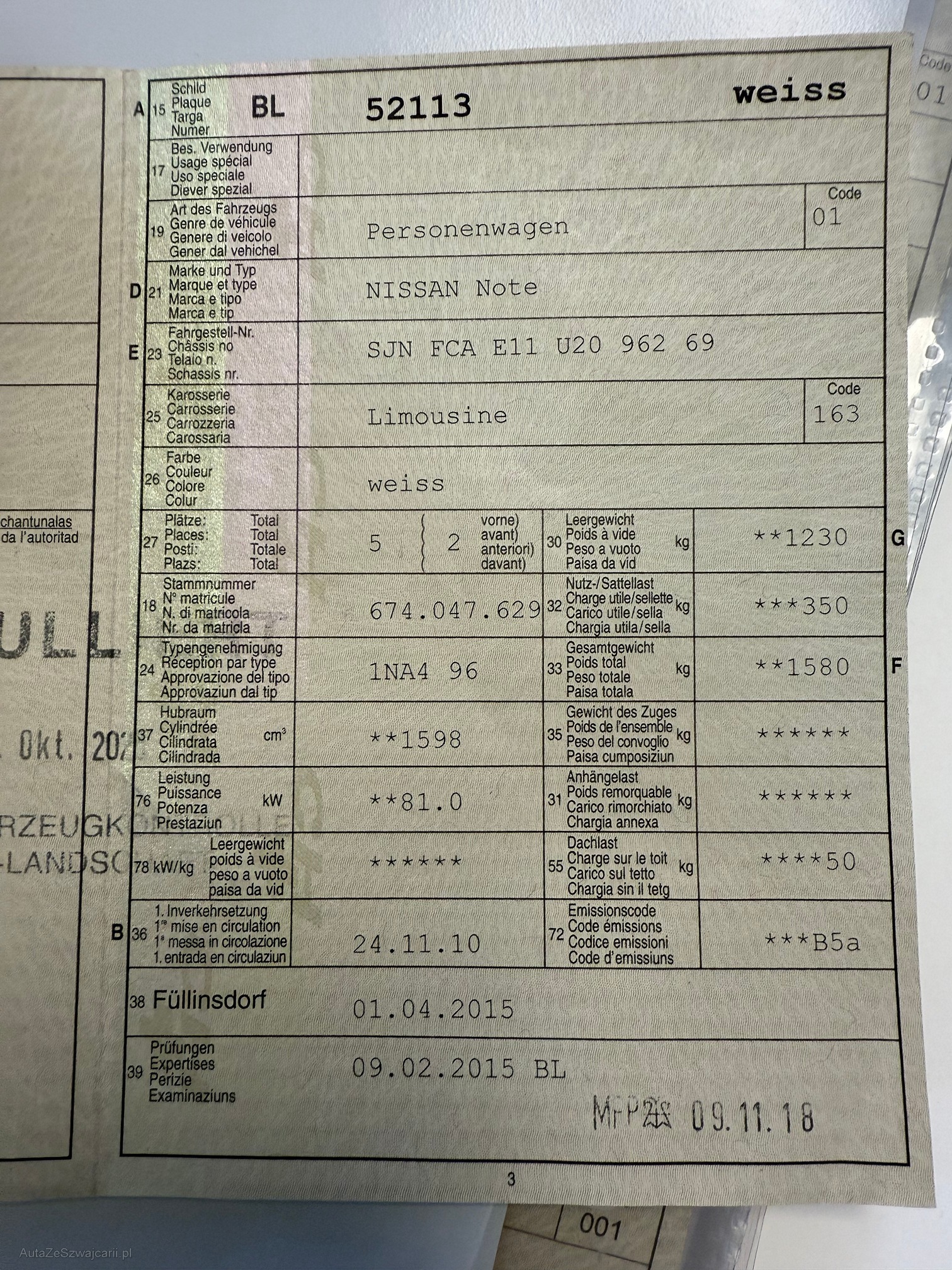 | Letzte Inspektion | 2018-11-01 |