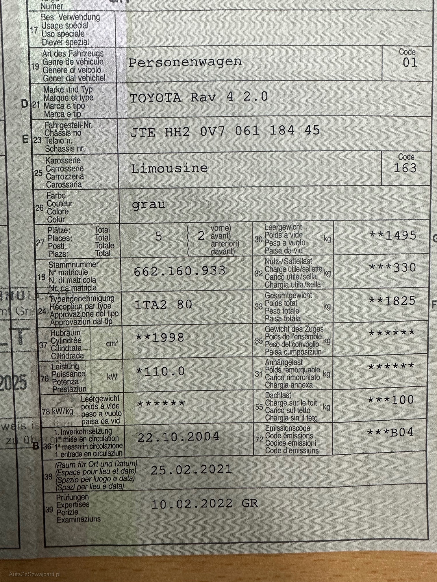 | Kommentar | Fahrzeug mit diversen Mängel: - Fahrzeug wurde bis letzte Woche jeden Tag gefahren! -Motorlampe leuchtet (Abgassensor) -Handbremsseil klemmt -Bremsen vorne sind zu ersetzen -MFK fällig -Service fällig -keine Servicehistorie vorhanden -Annlasser klemmt (Fahrzeug lässt sich nur schwer starten) -Fahrzeugbatterie schwach -kein Radio vorhanden (siehe Fotos) -diverse Kratzer und Dellen (siehe Fotos) -Korrosion (siehe Fotos) -Scheinwerfer milchig (siehe Fotos) -beide Schlüssel defekt, Funkfernbedienung funktioniert aber noch (siehe Fotos) -Steuerrad abgenutzt (siehe Fotos) -Fahrzeug stark verschmutzt (siehe Fotos) -Flecken auf den Sitzen (siehe Fotos) -etc. Es wurde kein Werkstatttest getätigt! (Technische Mängel laut Kundenaussage) Jede Gewährleistung, soweit nach Gesetz möglich, wird wegbedungen. Insbesondere sind Wandelung und Minderung ausgeschlossen! Nach Zuschlag muss das Fahrzeug innerhalb von 5 Arbeitstagen abgeholt werden. Ausreden jeglicher Art werden nicht berücksichtigt! Jeder weitere Tag wird mit CHF 50.- Standplatzkosten verrechnet. |