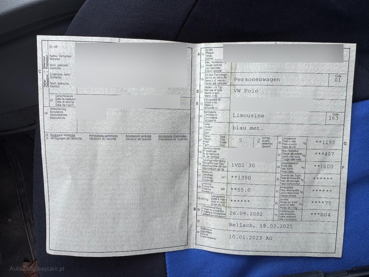| Fahrzeugausweis | Vorhanden |