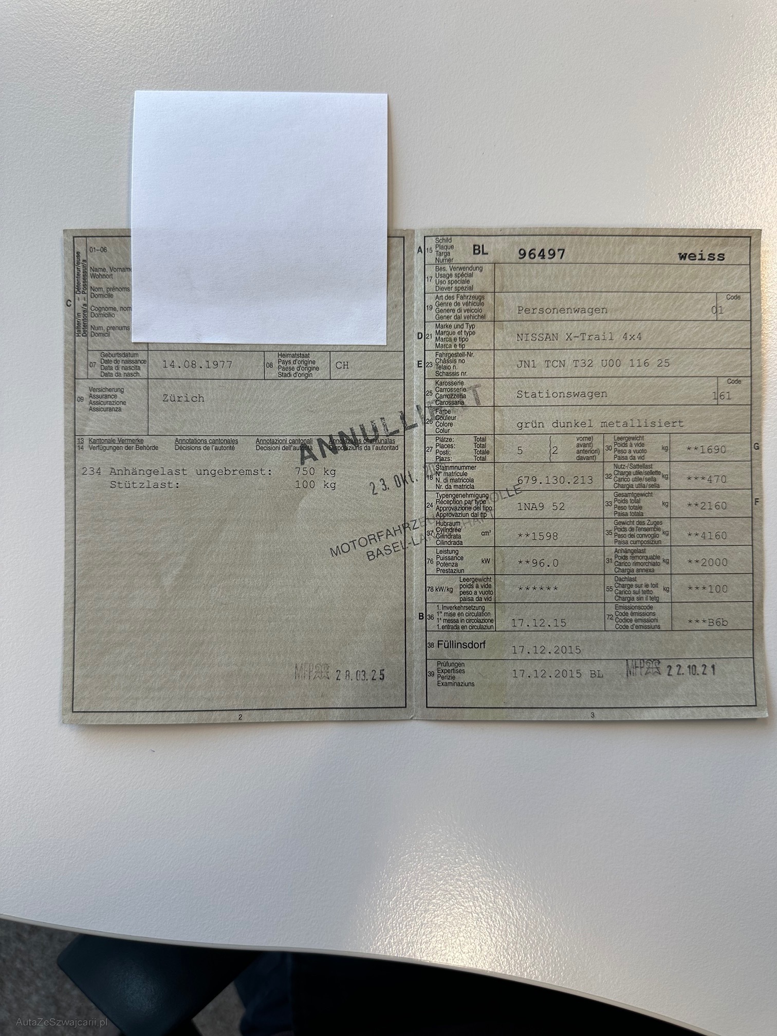 | Kommentar | Fahrzeug wurde nicht geprüft, Verkauf ab Platz! Fahrzeug hat auf der Motorhaube 3-4 kleine Dellen. Fahrzeug hat rundherum Kratzer, grössere sind Einzel fotografiert. Hundehaare im Fahrzeug |