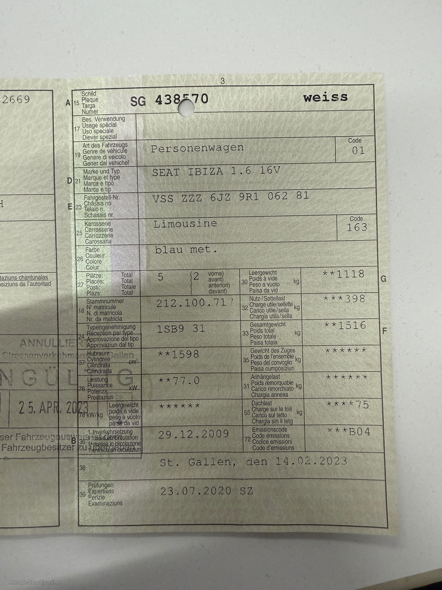 | Mängel auf Fotos sichtbar | No |