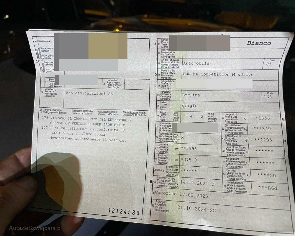 | Fahrzeugausweis | Vorhanden |