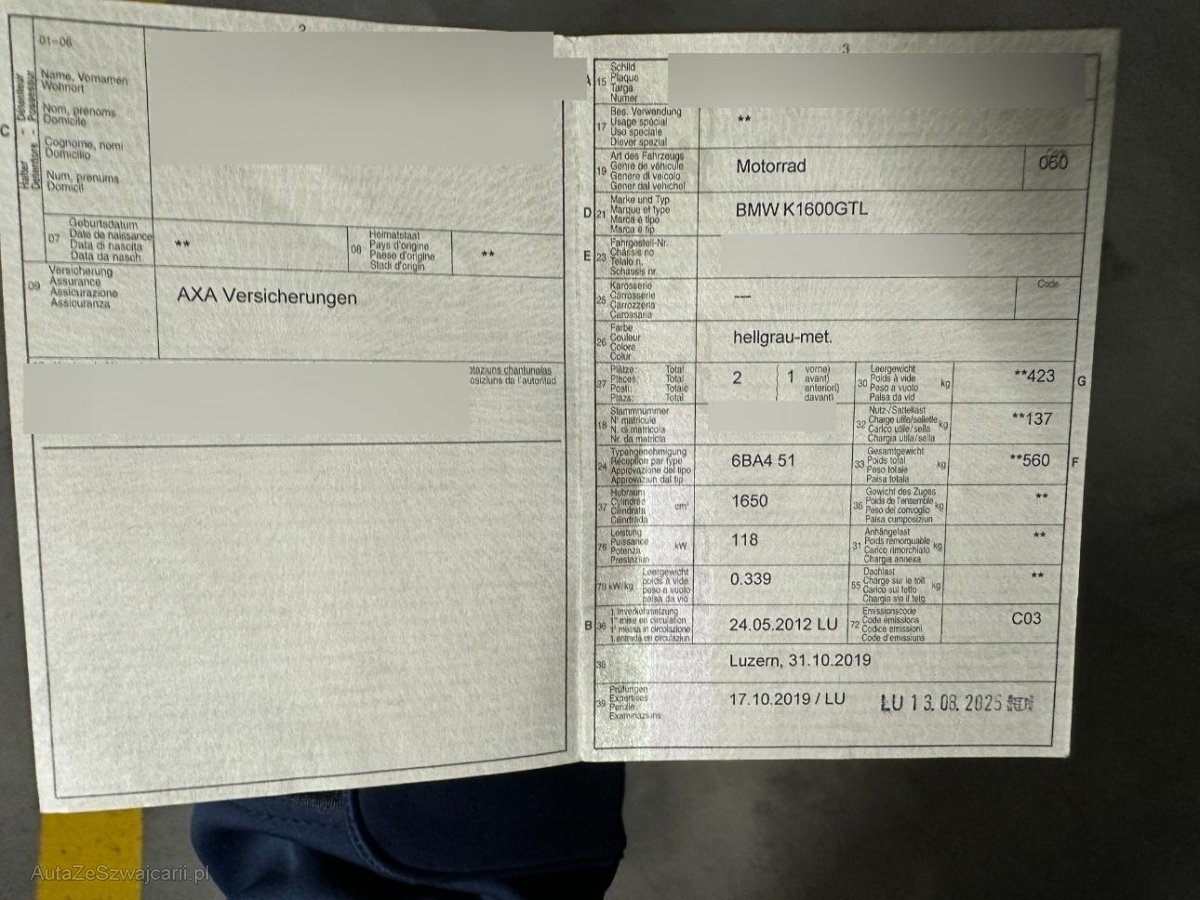 | Fahrzeugausweis | Vorhanden |