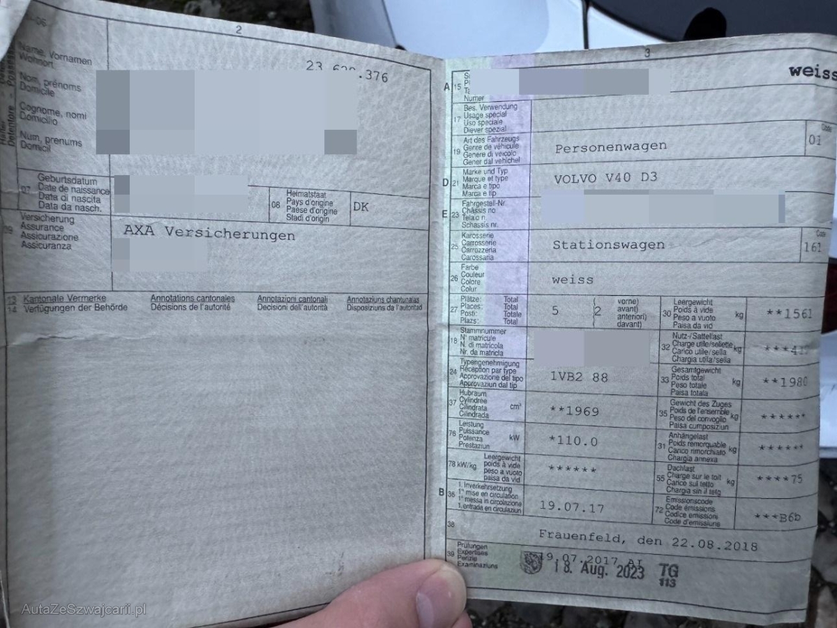 | Fahrzeugausweis | Vorhanden |