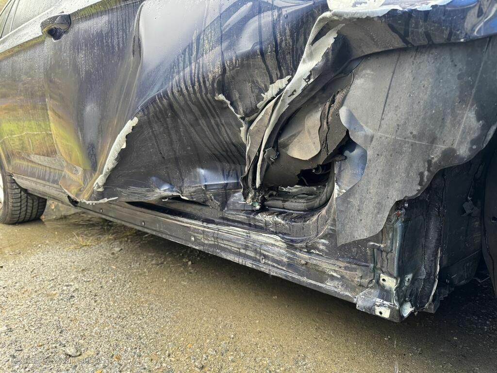 Cofano, faro, paraurti, parafango, portiere, sottoporta, rinforzo parafango/montante A, ruota/cerchio, sospensione anteriore, semiasse e vari altri componenti danneggiati. Airbag frontali esplosi.