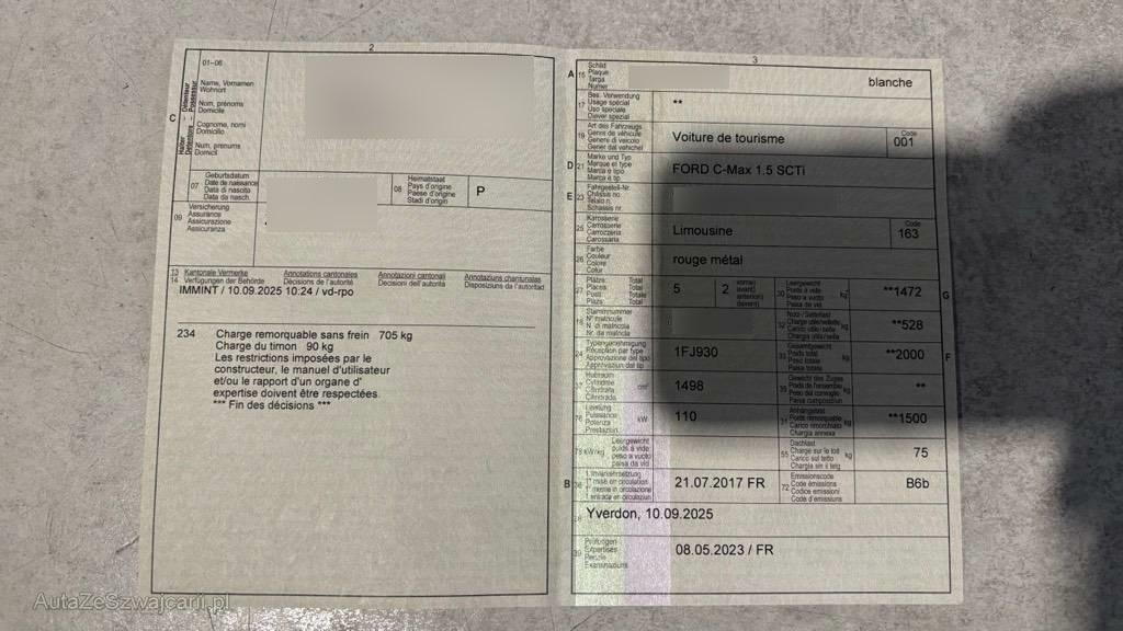 | Fahrzeugausweis | Vorhanden |