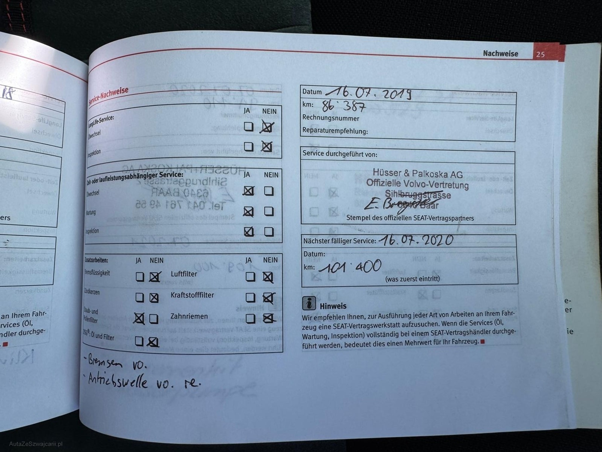 | Vordere Bremsen müssen ersetzt werden | No |