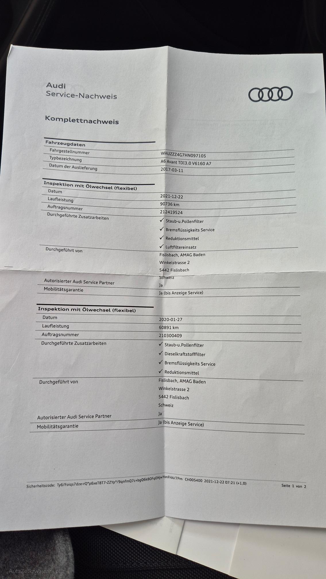 | VIN | WAU ZZZ 4G7HN097105 |