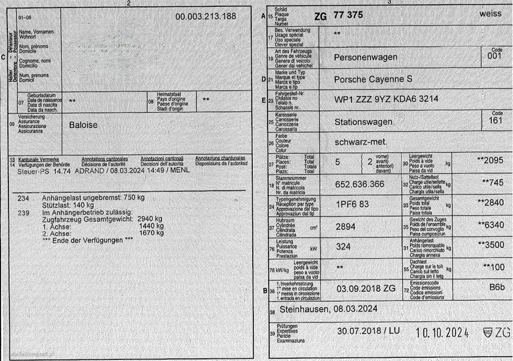 | Kommentar | Fahrzeug nicht auf Schäden geprüft. |