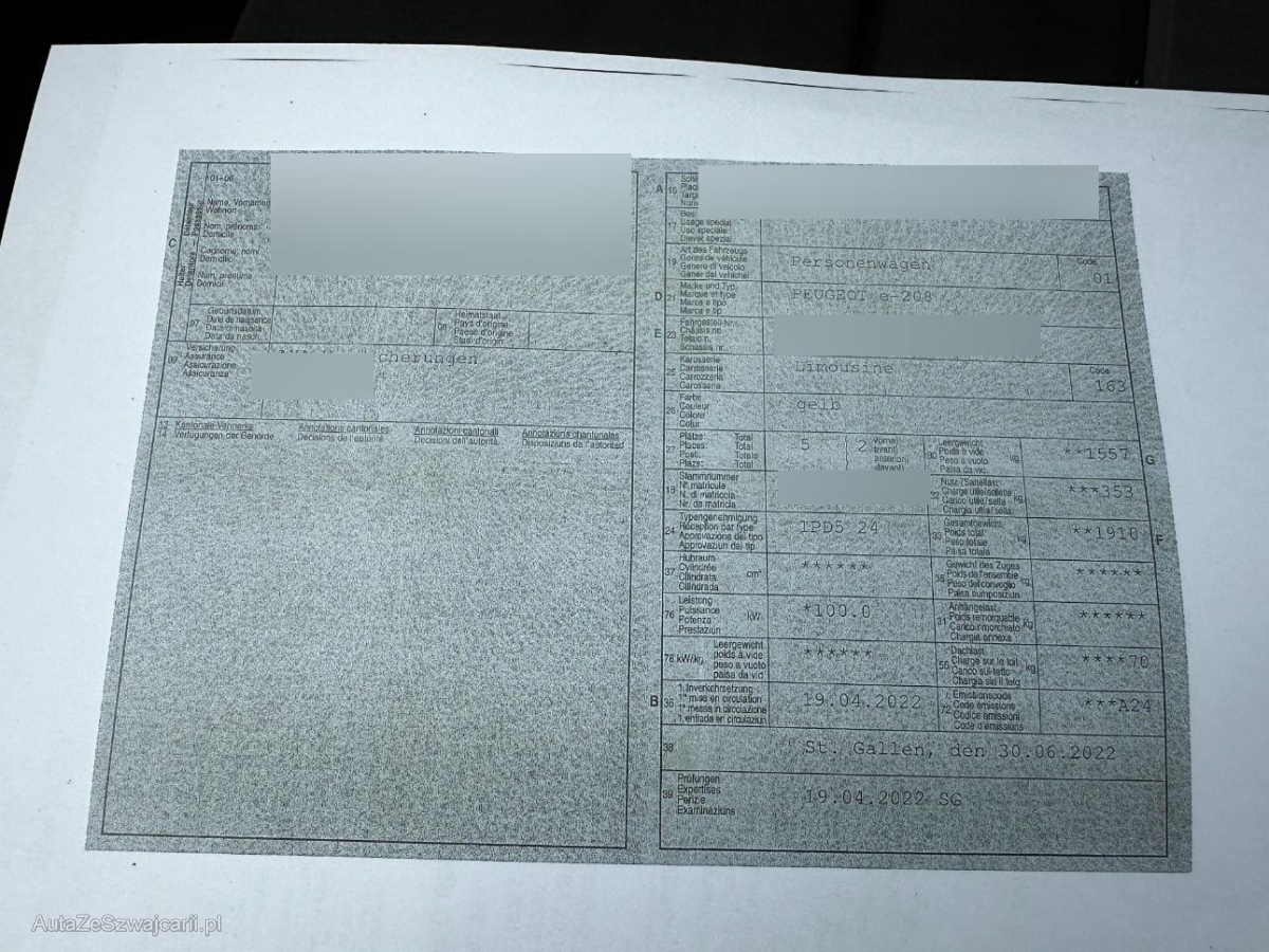 | Fahrzeugausweis | Vorhanden |
