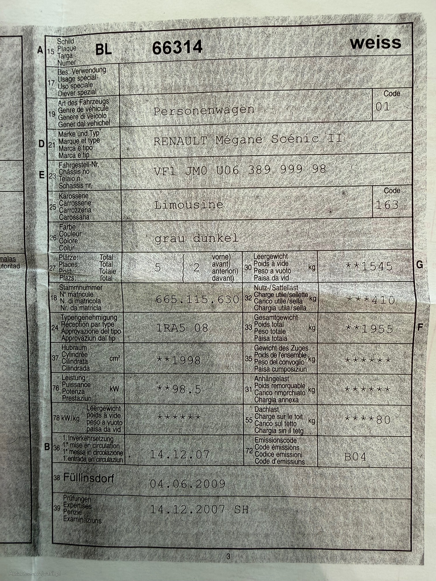 | Kommentar | Kein DPF-Test durchgeführt. Am Fahrzeug wurde kein Werkstatttest gemacht (für sichtbare oder nicht sichtbare Mängel wird nicht gehaftet). Wir testen und kontrollieren nicht alle Funktionen vom Fahrzeug. Das Risiko liegt somit vollumfänglich beim Käufer. Nachdem der Höchstbietende den Zuschlag erhalten hat, gibt es keine Nachverhandlung, auch wenn nicht deklarierte Mängel zum Vorschein kommen sollten. Ab Platz ohne Garantie, Wandelung und Minderung werden wegbedungen. Carosserie hat einige Dellen und Gebrauchsspurren. Beachtet bitte das Foto vonm Heck, da der Lack sich löst. |