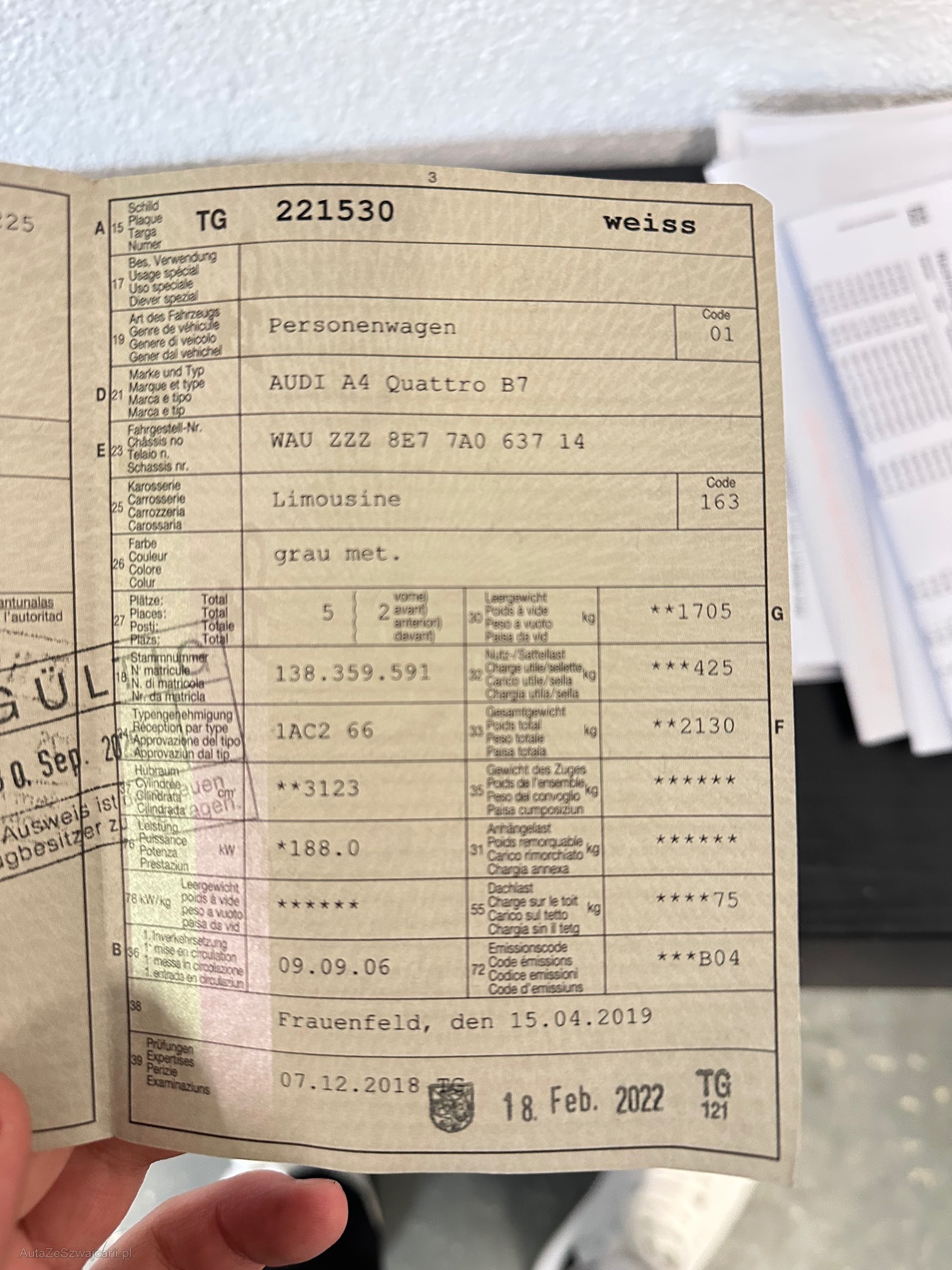| Kommentar | Diverse Gebrauchsspuren gemäss Bilder, Motor und Getriebe laufen gut. Heckklappe öffnet sich nur per Fernbedienungen, Parksensoren ohne funktion. Am Fahrzeug wurde kein Werkstatttest gemacht (Für sichtbare oder nicht sichtbare Mängel wird nicht gehaftet). Wir testen & kontrollieren nicht alle Funktionen des Fahrzeugs. Das Risiko liegt somit vollumfänglich beim Käufer. Nachdem der Höchstbietende den Zuschlag erhalten hat, gibt es keine Nachverhandlung, auch wenn nicht deklarierte Mängel zum Vorschein kommen sollten. Ab Platz ohne Garantie, Wandelung und Minderung werden wegbedungen. |