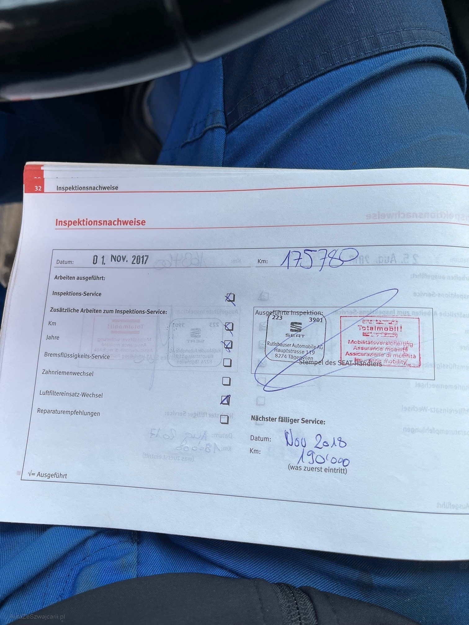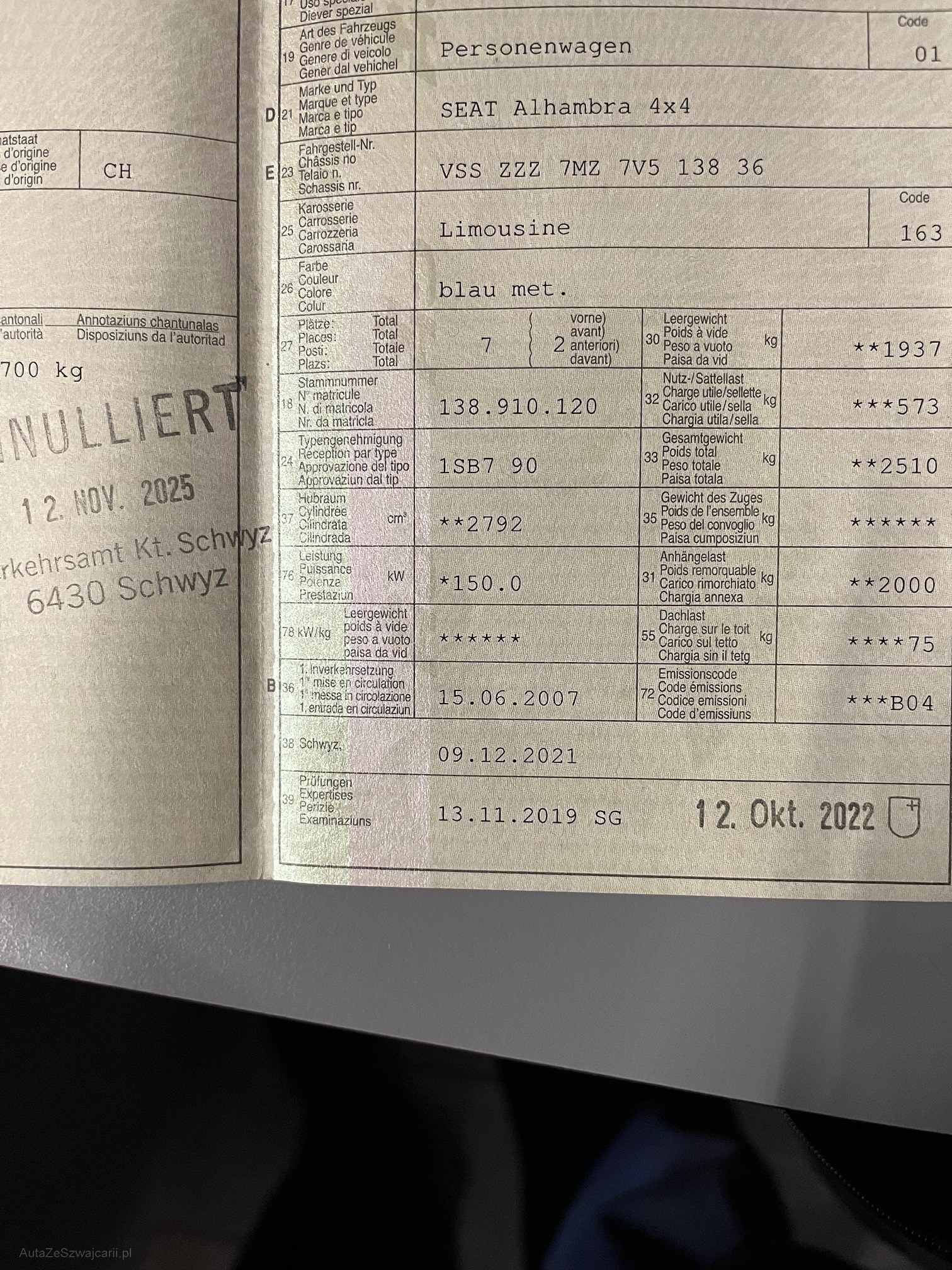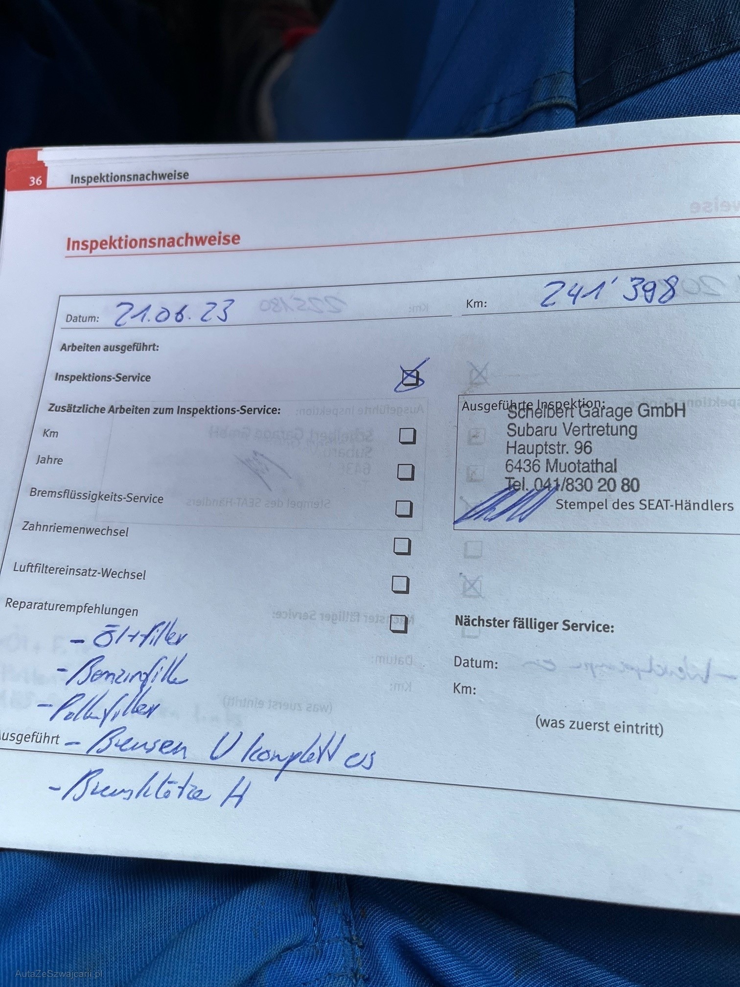 | Kommentar | Wurde bis zum annullieren noch gefahren Zustand gemäss Fotos, diverse kleine Beulen und Kratzer vorhanden Kein Werkstatttest gemacht, keine Garantie und keine Nachverhandlungen bei weiteren Mängeln!! |