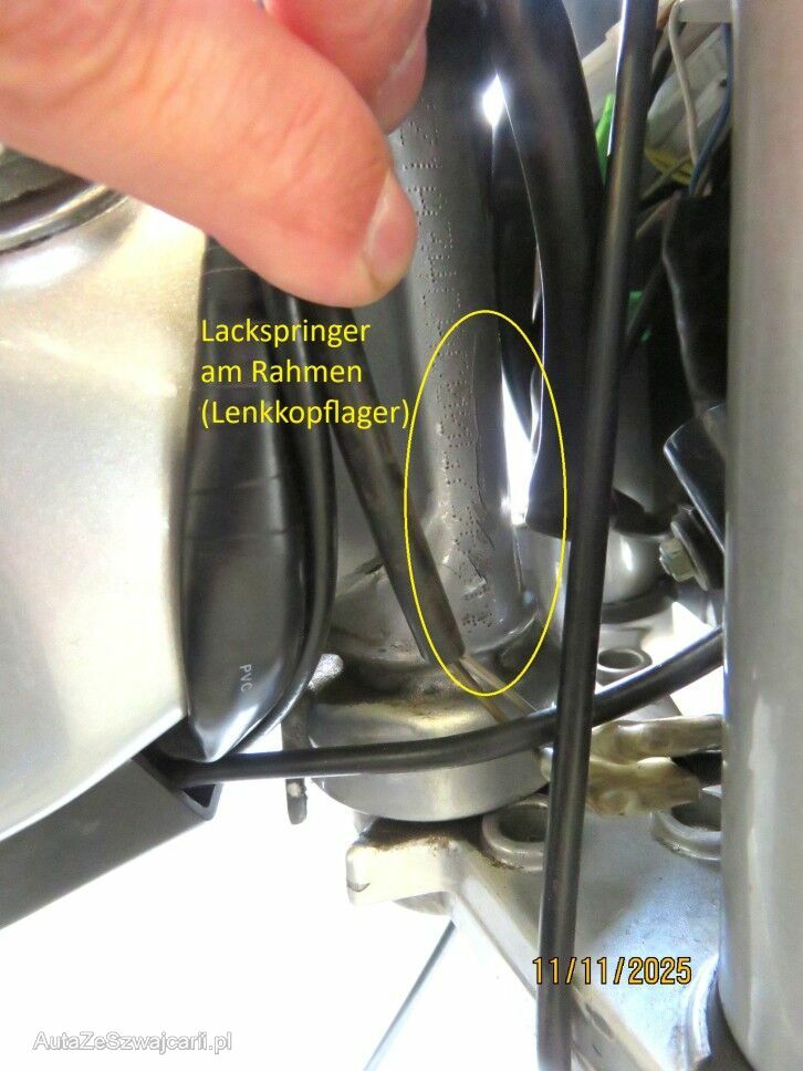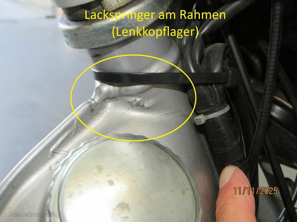 -Rahmen aufgestossen, deformiert (Lackspringer beim Lenkkopf)