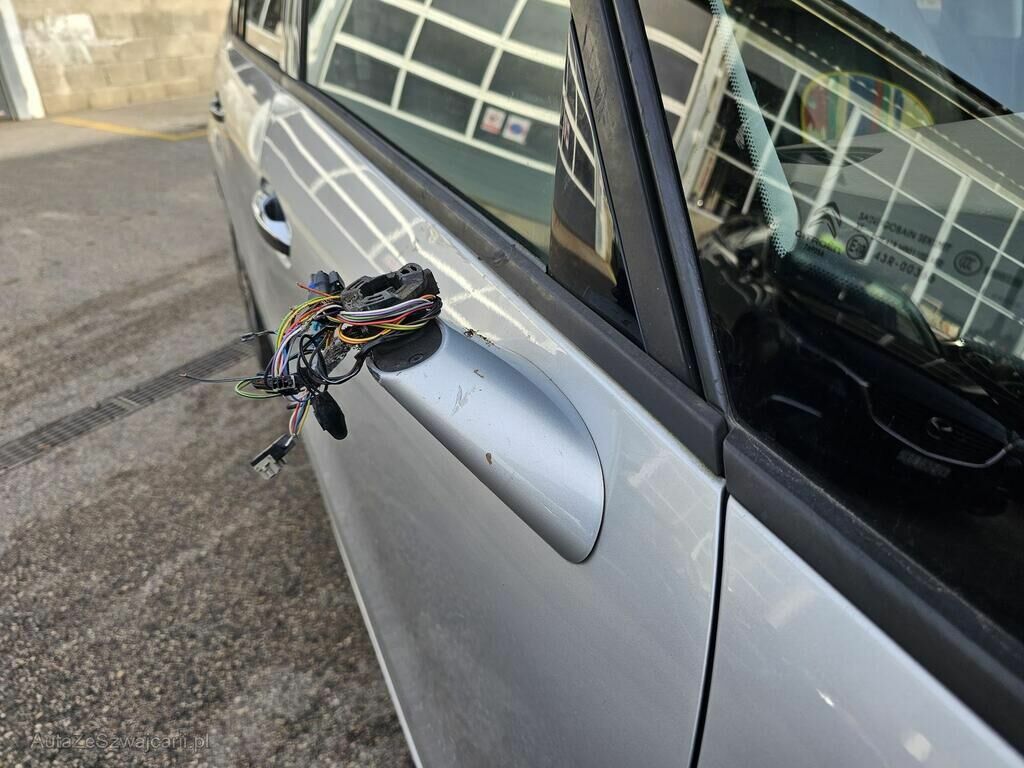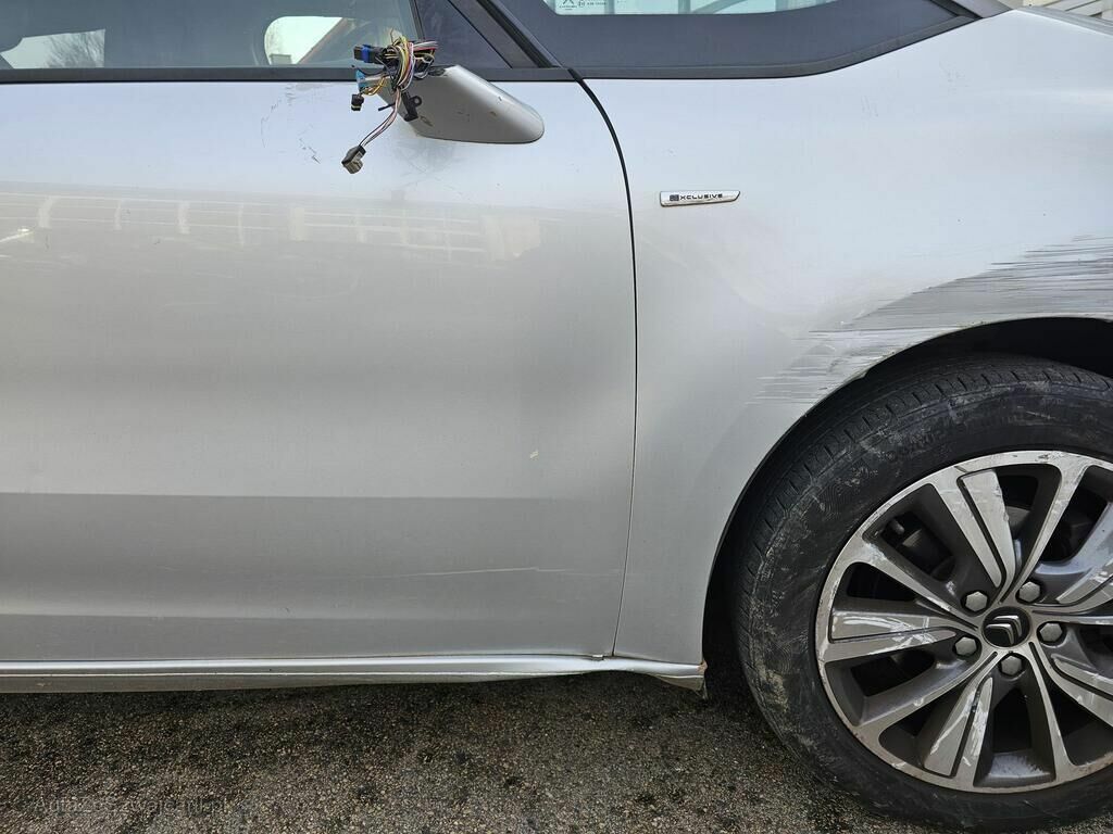 Choc latéral avant droit : pare-chocs, aile, jante, rétroviseur, clignoteur latéral, moulure lèche-vitre, vitre de porte et guide, porte.