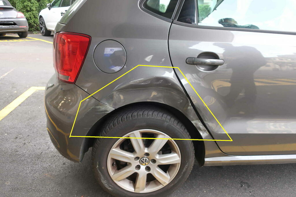 Seitenwand, Felge, Stossfänger und Türe hinten rechts.