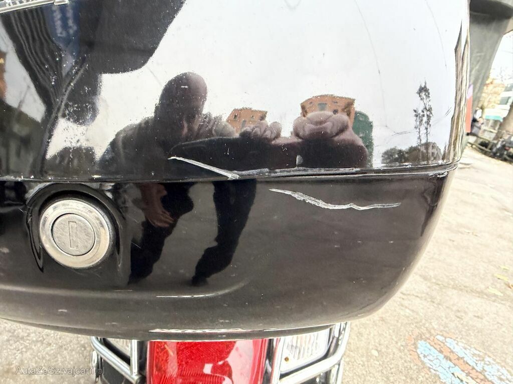 Schaden rechte Seite: Scheinwerfer verkratzt, Frontmaske verbeult und verkratzt (Vorschaden linke Seite), Zierleiste an Frontmaske verkratzt. Seitenteil hinten hat eine Beule und ist verkratzt, Topcase ist verkratzt (Vorschaden linke Seite), Sturtzbügel hinten verbogen und leicht verkratzt. Roller ist fahrbar, Motor läuft, Aufzählung ist nicht abschliessend.