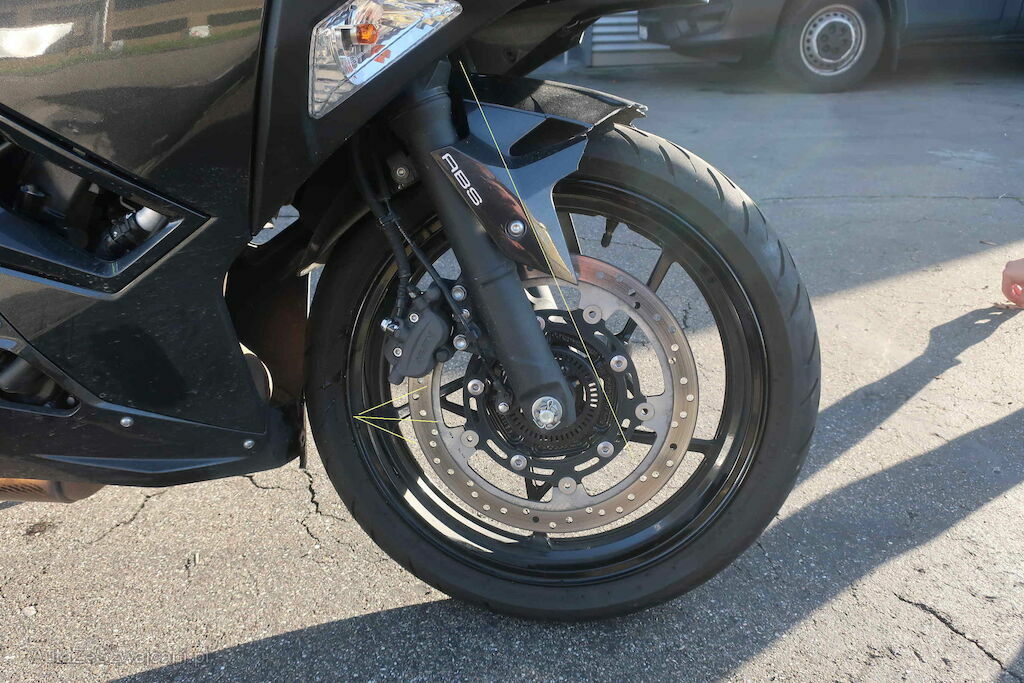 Gabel gestaucht, Scheinwerfer gerissen, Lenker krum, Schalungen gebrochen.