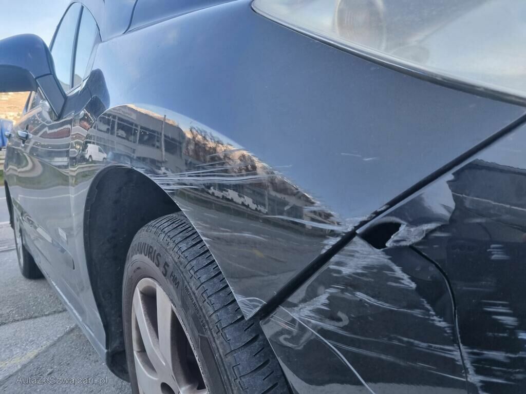 Porte arrière et aile arrière droite enfoncées.