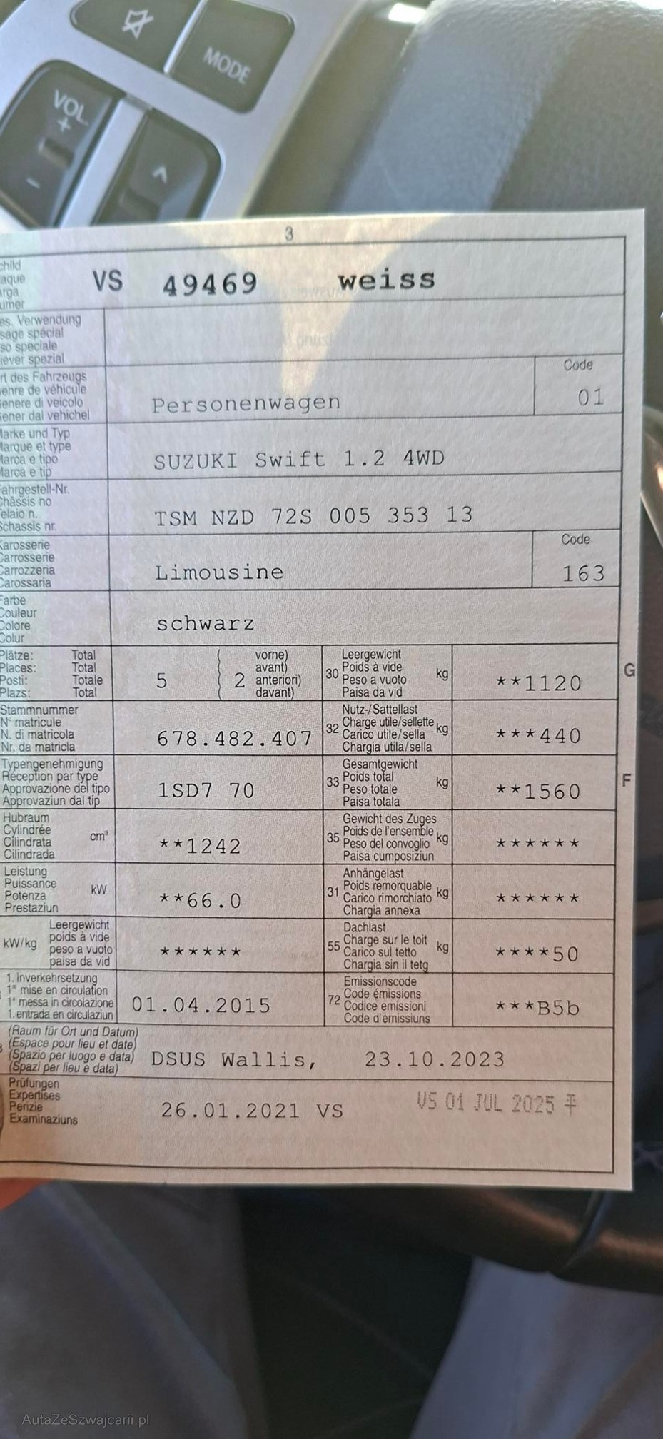| Kommentar | Zustand gemäss Fotos Scheinwerfer vorne oben leicht milchig Keine Mängel bekannt |