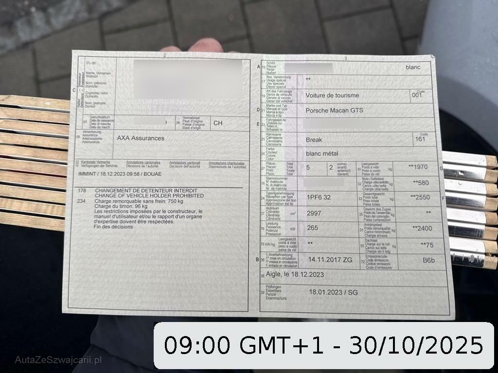 | Zusatzinformationen | BMC-Luftfilter im Fahrzeug verbaut, Originalfilter mit dem Fahrzeug mitgeliefert.Kürzlich durchgeführte Wartung:Am 03.02.2025 bei 102'922 km: Motorölwechsel, Getriebeölwechsel und Bremsflüssigkeitswechsel. Austausch der 6 Zündkerzen, des Motorölfilters, des Getriebeölfilters und des Innenraumfilters.Porsche Approved Garantie bis zum 27.12.2025Ende 2024 Austausch der Bremsscheiben und -beläge vorne und hinten4 neue Sommerreifen Goodyear Eagle F1 ASYM 3 SUV (2x 295/40R20 106Y und 2x 265/45R20 104Y), montiert im März 202Die (vom Fahrzeugexperten) ermittelten Reparaturkosten beziehen sich auf das versicherte Ereignis. Allfällige zusätzliche, nicht versicherte Schäden/Vorschäden, sind in den Reparaturkosten nicht enthalten. Die deklarierten Ausstattungsmerkmale können von der effektiven Ausstattung abweichen.AchtungBei einem Hochvoltsystem - Spannungsfreiheit prüfen. Sicherheitshinweise und Betriebsanleitungen des Herstellers konsultieren und befolgen. Das Fahrzeug steht beim nachfolgend aufgeführten Standortbetrieb und muss vor Gebotsabgabe besichtigt werden.Bitte melden Sie Ihren Besuch beim Standortbetrieb telefonisch an:Dépannage automobile BallestrazChaussée de Treycovagnes 111400 Yverdon-les-Bains/VD024 425 55 55 |