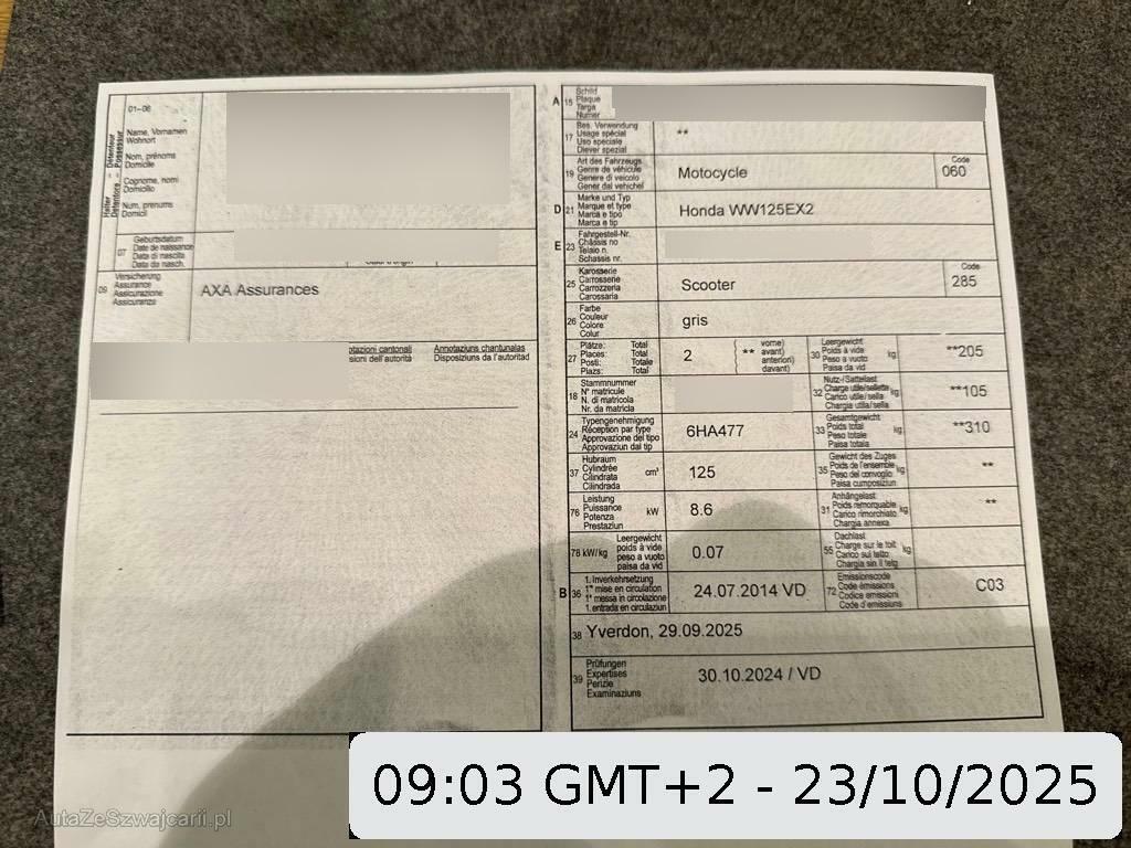 | Fahrzeugausweis | Vorhanden |