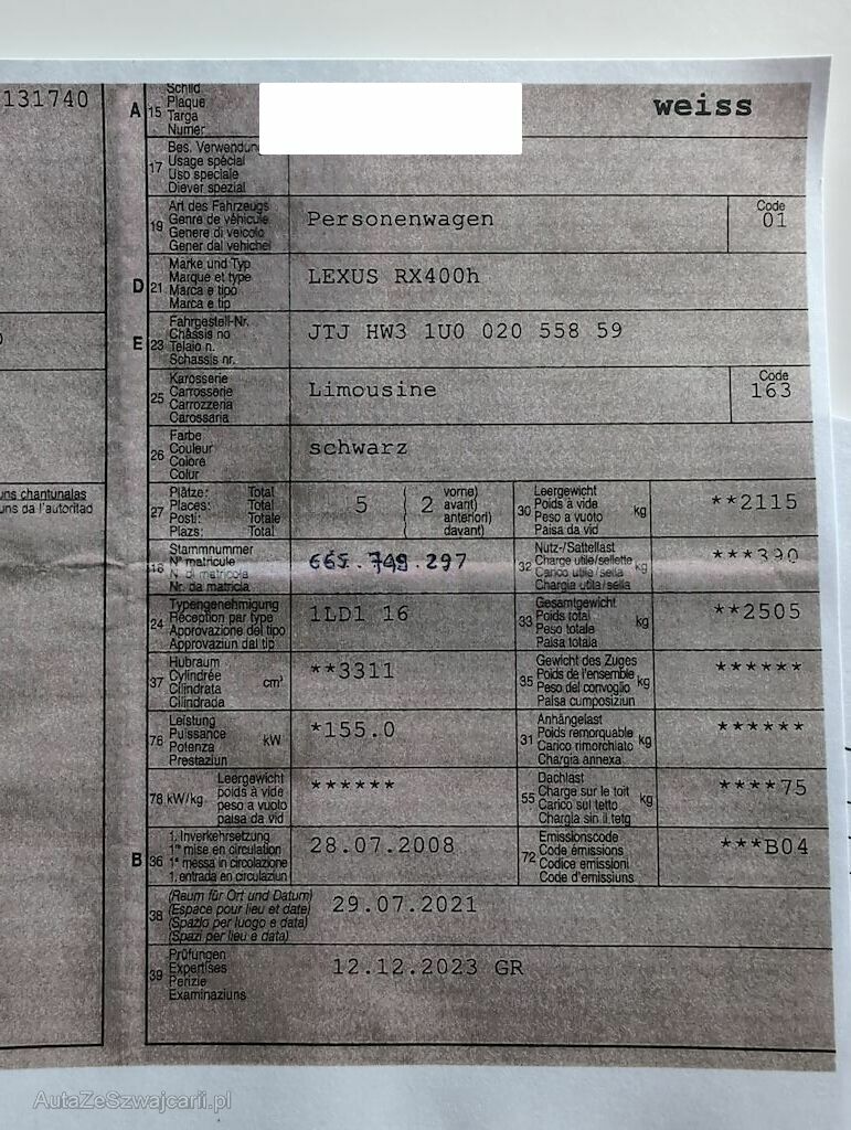| Typ | RX400h |