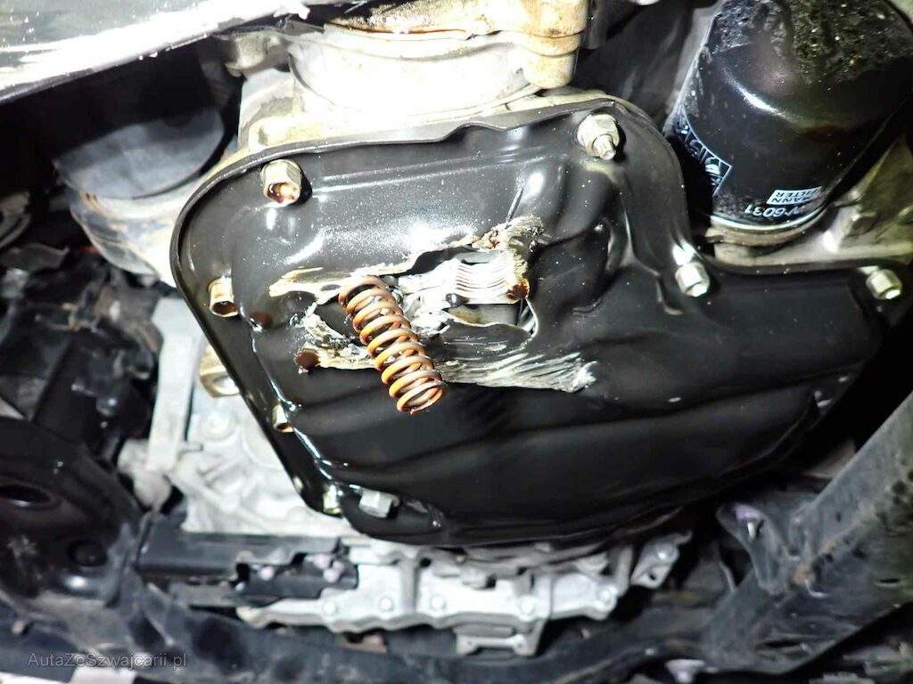 Danno collisione anteriore destra con meccanica e motore rotto.