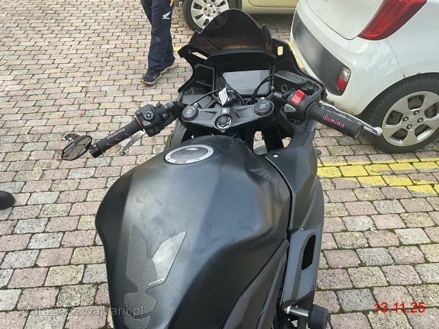 | Schadensbeschreibung | Choc côté droit puis chute côté gauche. A remplacer: cadre, réservoir, phare, compteur, roue avant, fourche complète, disques avant, ensemble des carénages et périphériques... / Dommages préexistants: traces d'utilisation |