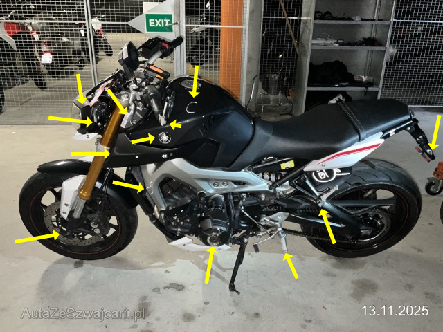 | Schadensbeschreibung | Beschreibung der Schäden: linke Seite, Kratzer Rahmen, Tank kleine Delle, Deckel Kurbelgehäuse, Spiegel usw. Service und Kettenspanner fällig. KV inkl Ersatz Rahmen ( Kratzer ) |