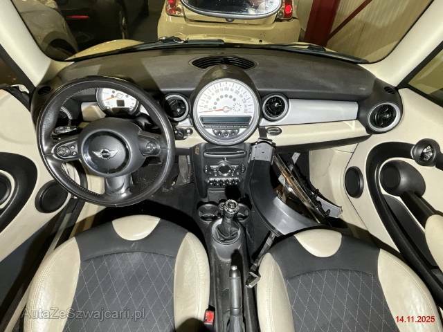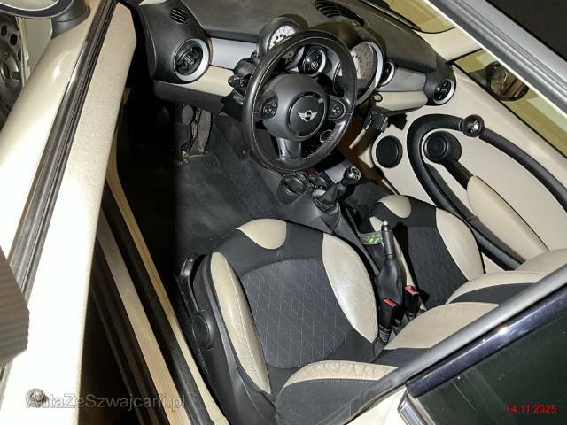 | Sonderausstattung | Lenkrad: Sport-Lederlenkrad, Radio MINI Boost, Aussenspiegel rechts und links elektrisch verstell- und beheizbar und Scheibenwaschdüsen beheizbar, Schutzverglasung, Leichtmetallräder 6-Star Twin Spoke 16J, Veloursfussmatten vorne und hinten, Paket: Lichtpaket, Multifunktionslenkrad, Elektrisches Glasschiebe- / Hebedach, Colour Line Polar Beige, Scheibenwischer vorne mit Regensensor und automatischem Einschalten der Abblendlichter, Black Bonnet Stripes (Motorhaubenstreifen schwarz), Ablagenpaket, Klima: Klimatisierungsautomatik, Leichtmetallräder schwarz, Dynamische Traktionskontrolle (DTC), Sitze: Vordersitze höhenverstellbar, Sitze: Sportsitze vorne, Räder: Notrad, Ladeboden variabel, Licht: Nebelscheinwerfer |