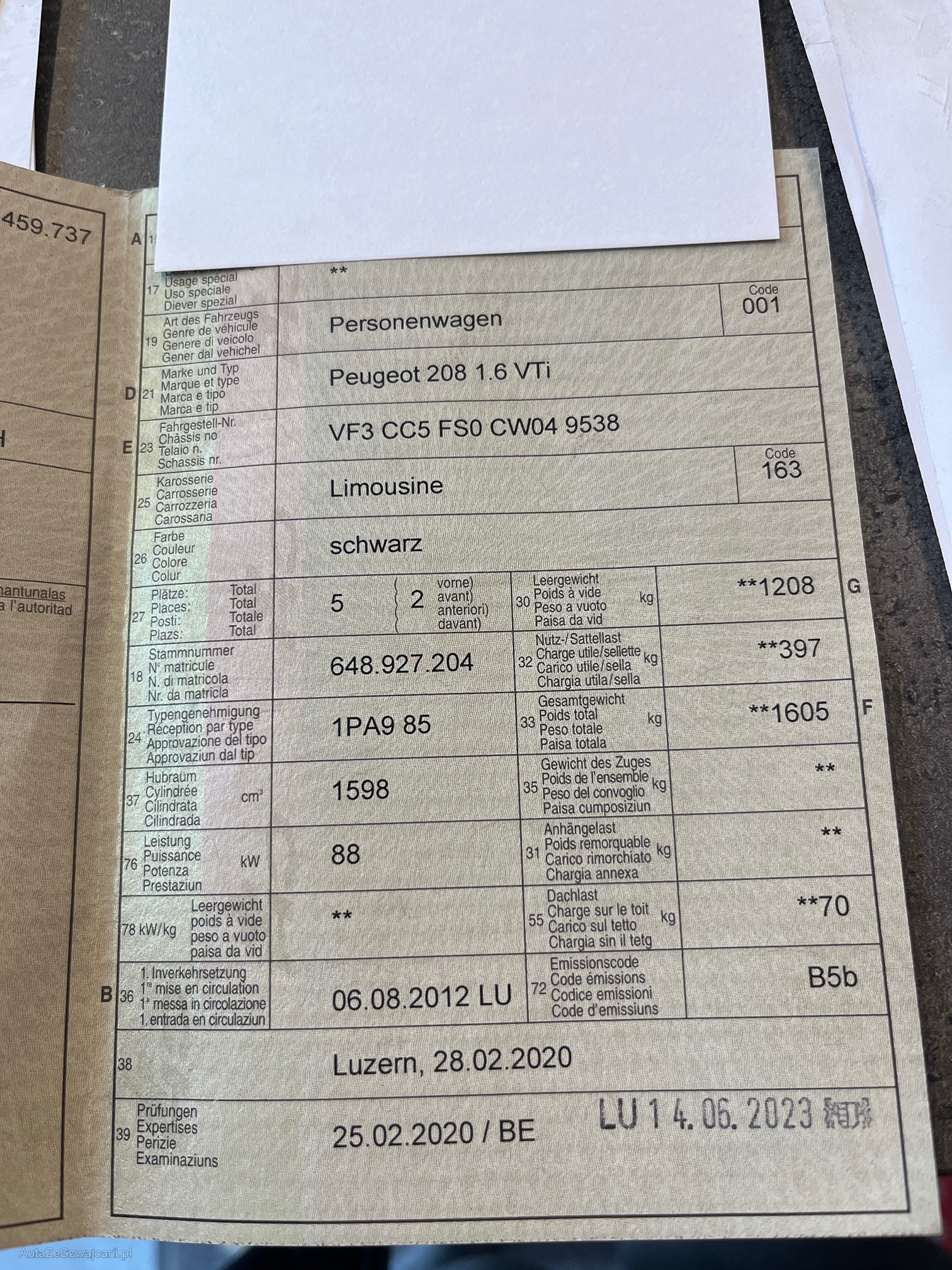| VIN | VF3CC5FS0CW049538 |