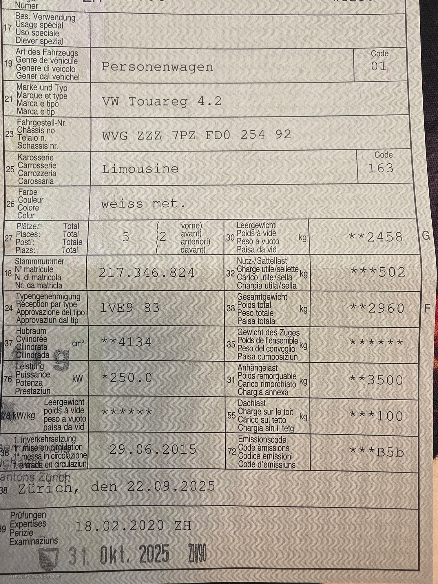 | Kommentar | Top Ausstattung und Zustand, frisch ab MFK, Standheizung, R-Line, neue Winterreifen. |
