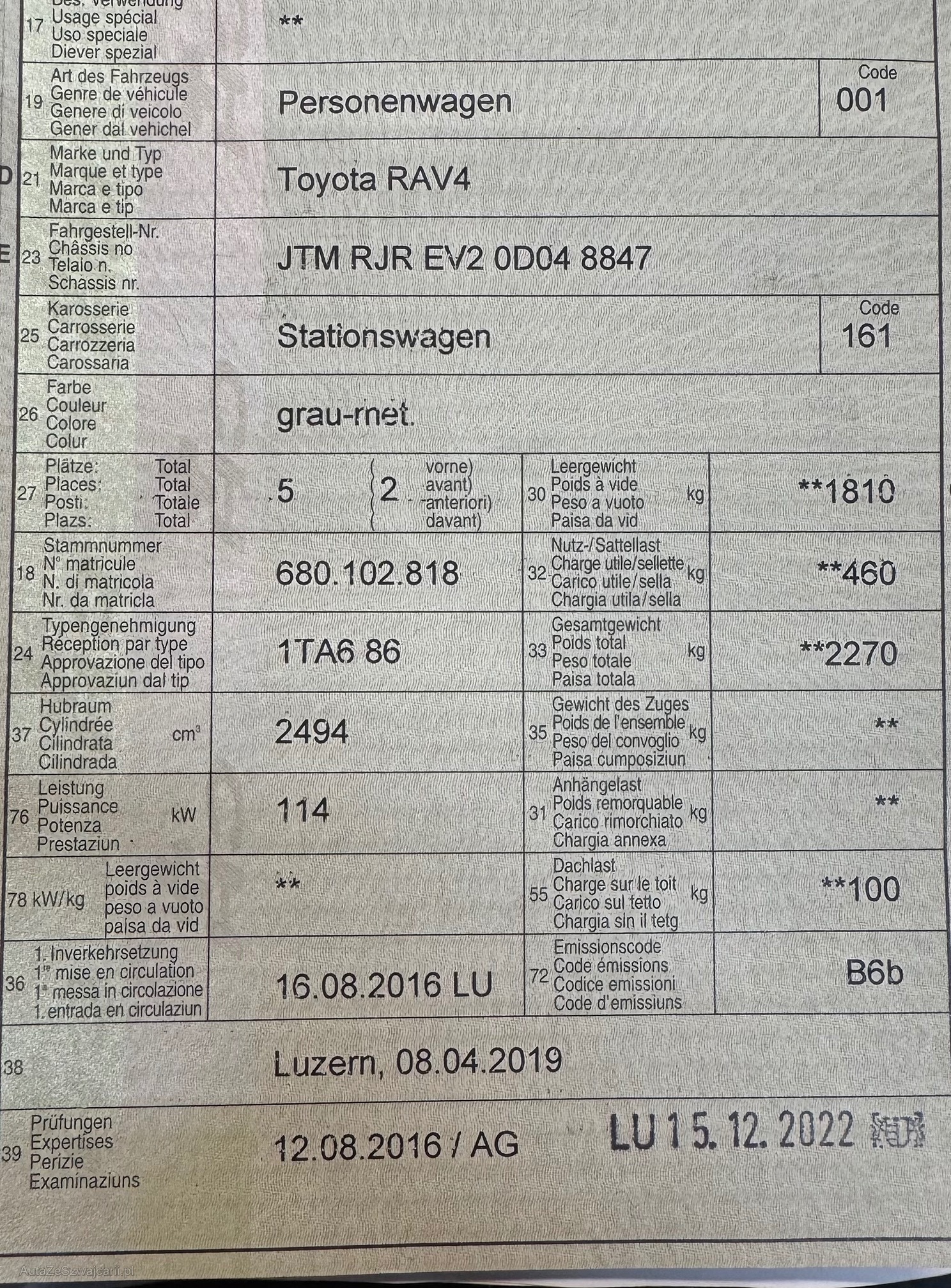 | Kommentar | Am Fahrzeug wurde kein Werkstatttest gemacht. Keine technische Kontrolle Fahrzeug ab Platz und ohne Garantie! Hundefahrzeug! Zustand gemäss Fotos Keine Nachverhandlung mehr möglich nach Zuschlag! |