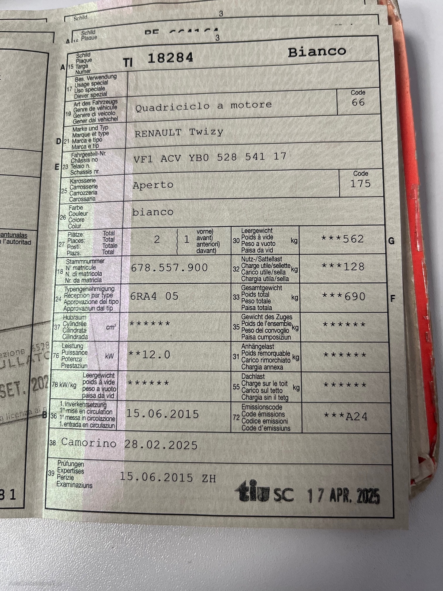 | Kommentar | Auto wird direkt im Auftrag des Kunden gegen nar verkauft. Wir haben keinen Werkstatt-Test gemacht deshalb können wir weder im Detail Auskunft über den Zustand noch irgend eine Gewährleistung geben. Ab Platz ohne jede Garantie. Fahrzeug weist dem Alter und km entsprechend Gebrauchsspuren, Beulen Kratzer auf. Auto muss innert 5 Tagen nach Auktionsende gegen bar abgeholt werden |
