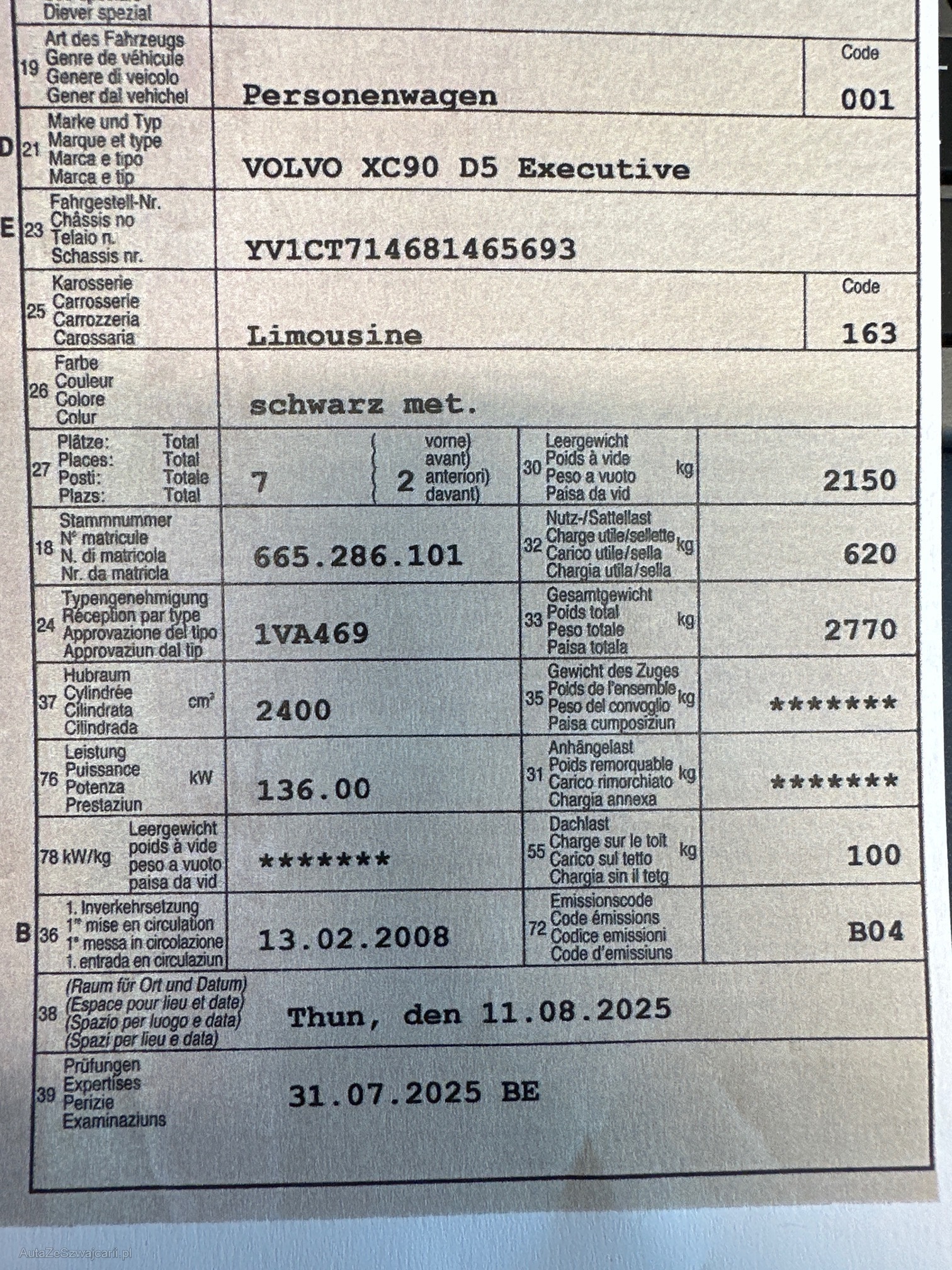 | VIN | YV1CT714681465693 |