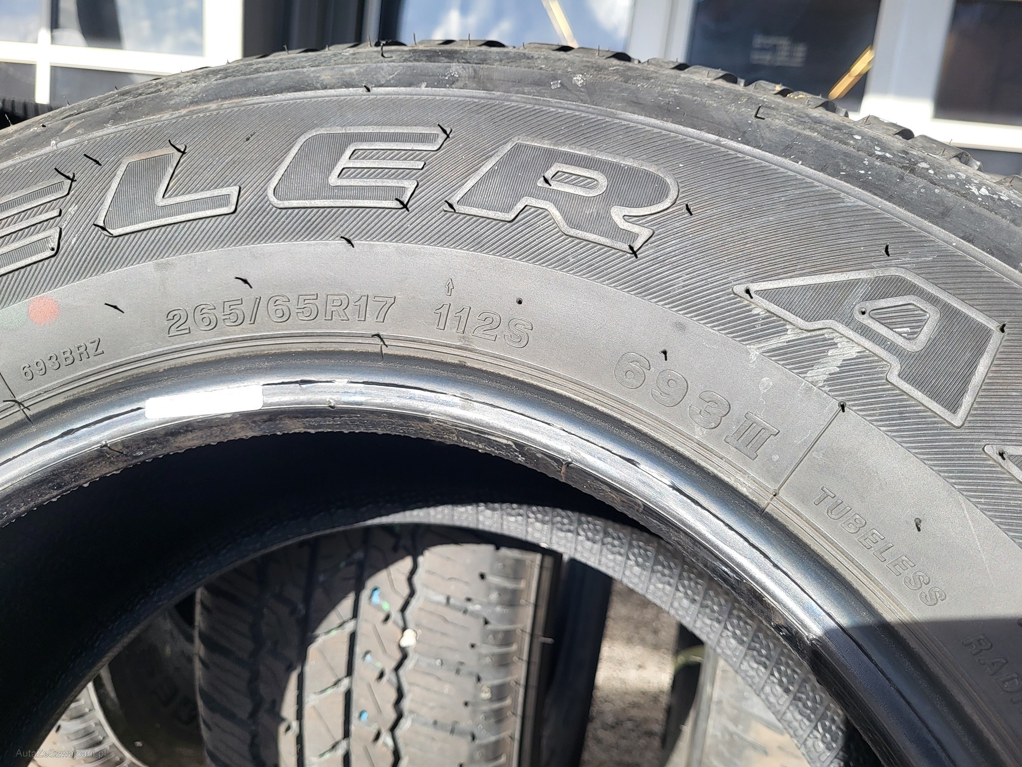 | Kommentar | Sie bieten hier auf 4 Reifen: Bridgestone Dueler 693III, 265/65 R17 112S. Produktion KW42 2024, mit ungefähr 1000km Laufleistung. Wir haben diese Reifen an einem Neuwagen Toyota Hilux demontiert, da der Kunde nur noch mit Winterreifen fahren möchte. |