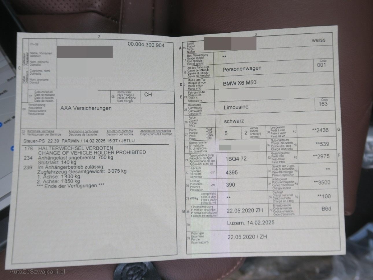 | Fahrzeugausweis | Vorhanden |