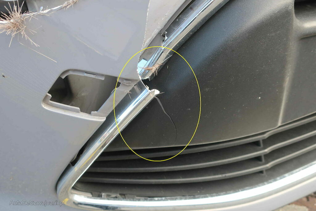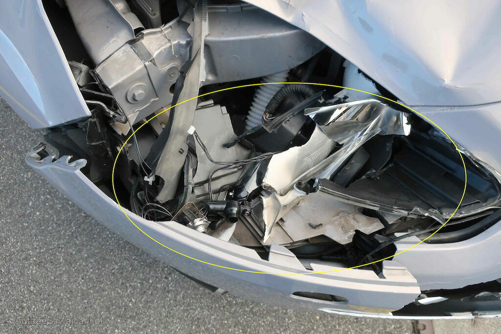 Beschädigung: Stossstange, Kotflügel, Scheinwerfer, vo. re., Motorhaube & Scharniere, Kühlergrill, Schlossträger vo. re., Spritzdüse vo. re., Seitenspiegel re.
