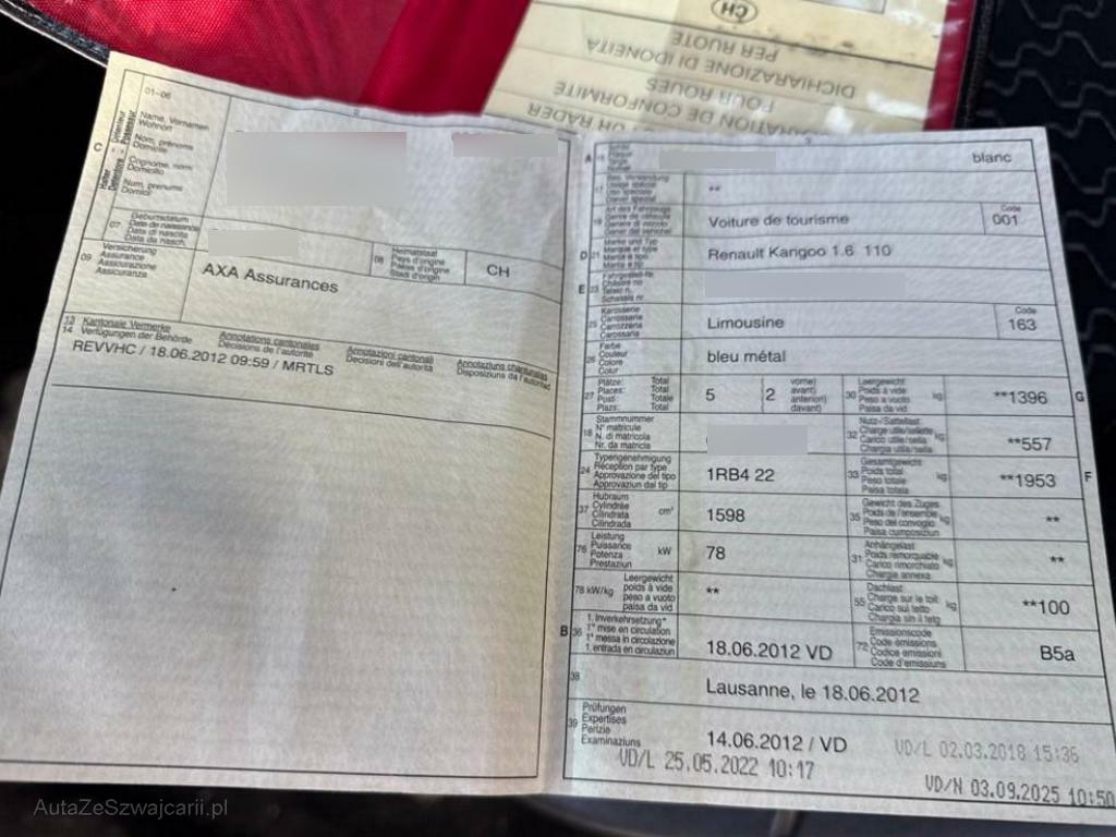 | Fahrzeugausweis | Vorhanden |