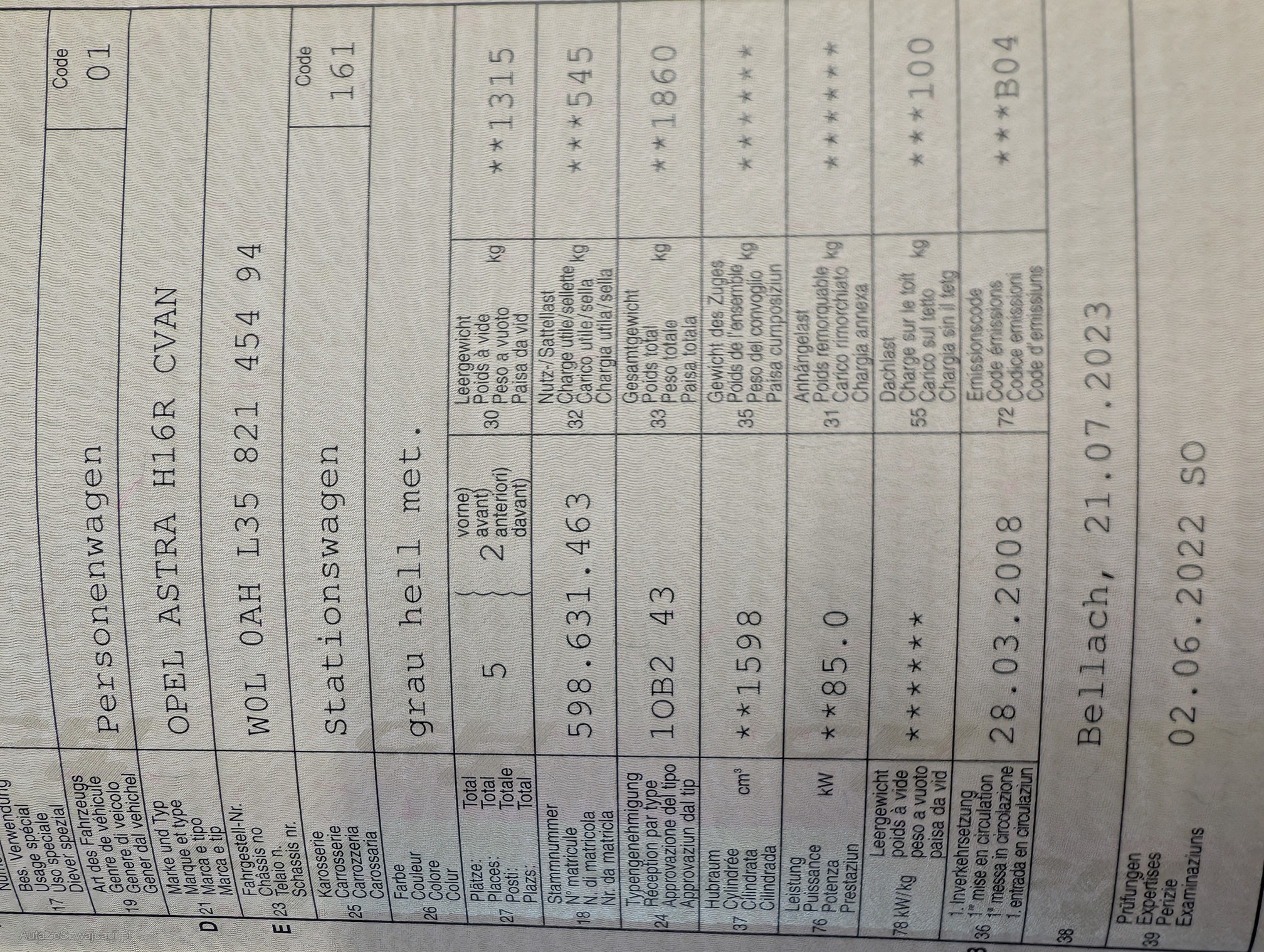 | VIN | W0L0AHL3582145494 |