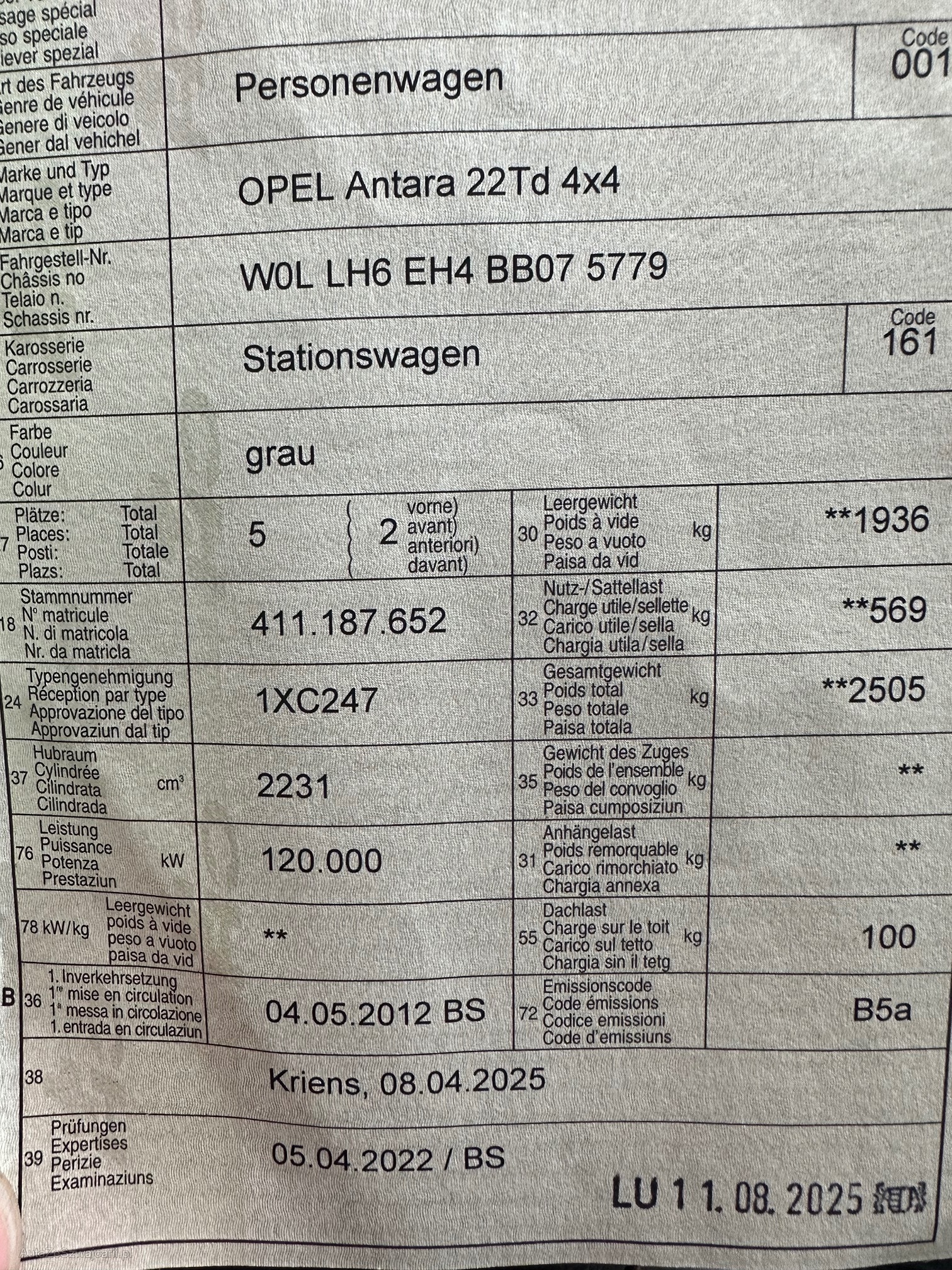| VIN | W0LLH6EH4BB075779 |