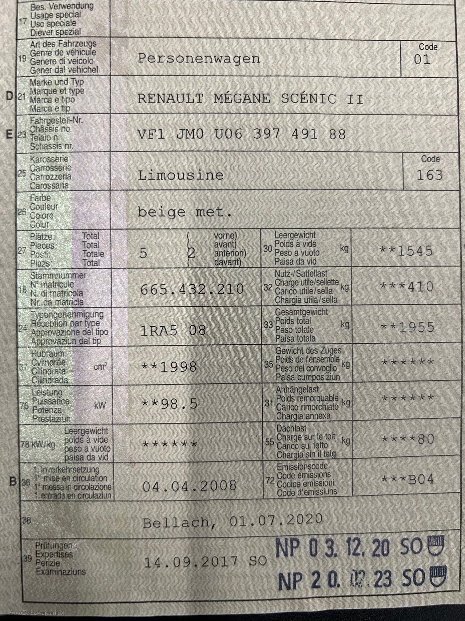 | Kommentar | Unsere Fahrzeuge wurden keiner Prüfung unterzogen. Fahrzeugkauf auf eigenes Risiko ab Platz ohne Nachwährschaft. Das Gewährleisten für Sachmängel wird weggegangen. Fahrzeuglieferung, Fahrzeugzustand und Ausstattung gemäss Bildern. |