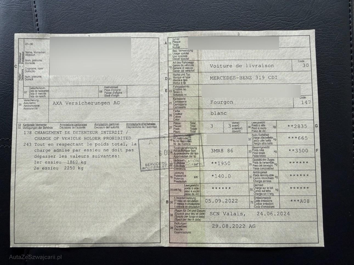 | Fahrzeugausweis | Vorhanden |