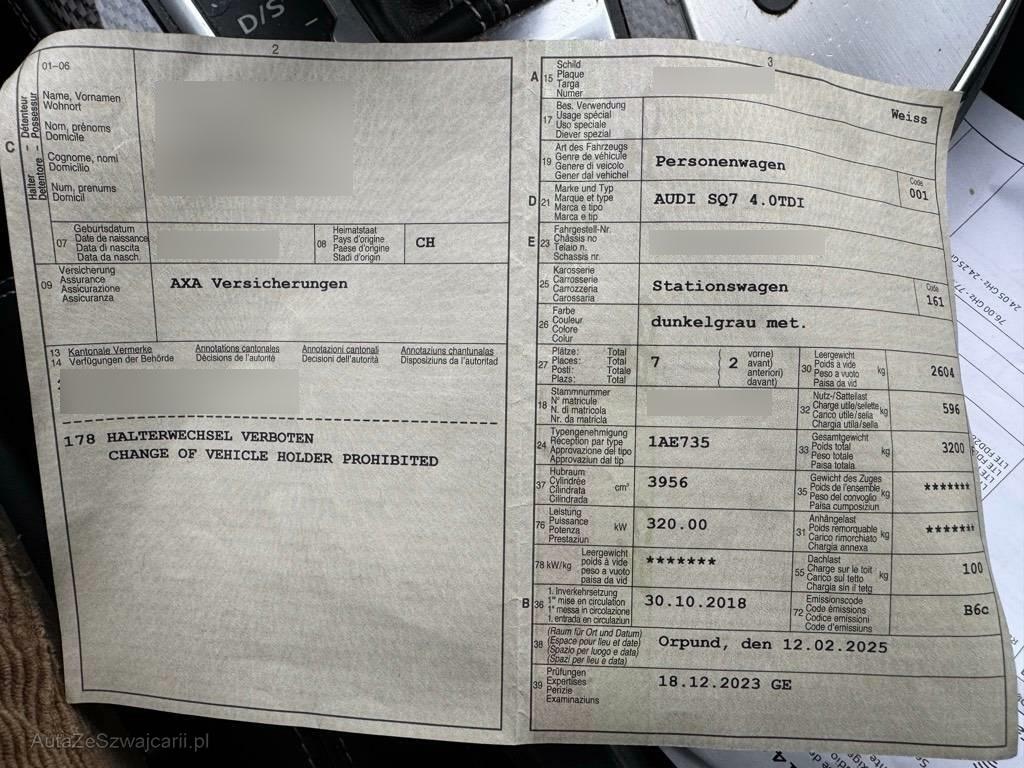| Fahrzeugausweis | Vorhanden |
