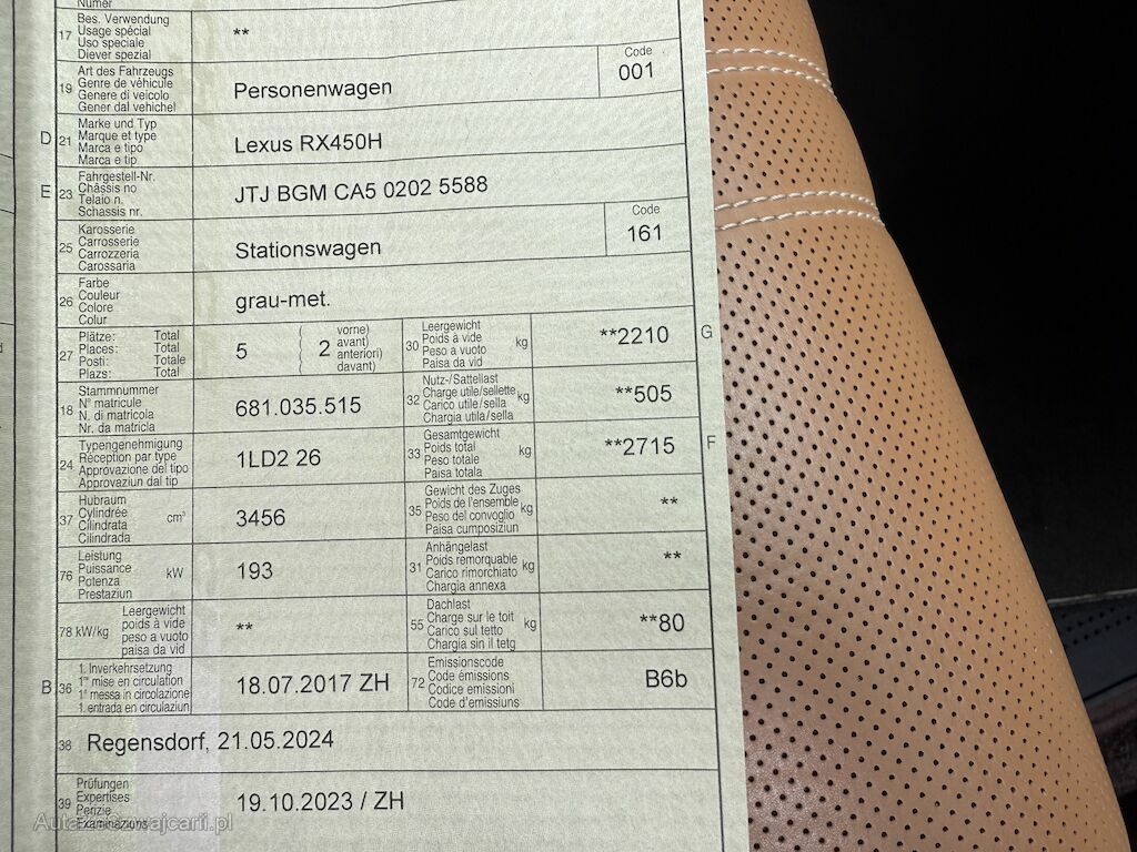 | Typ | RX450 Hybrid Excellence |