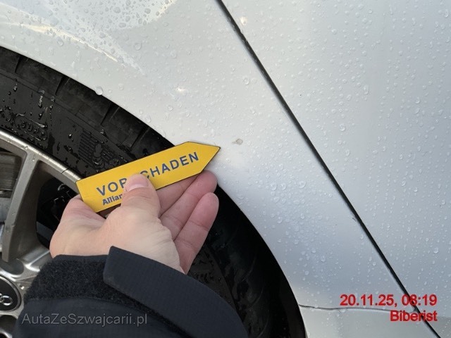 | Schadensbeschreibung | Beschreibung der Schäden: beide Türen, B-Säule, Schwellenverkleidung deformiert/zerkratzt Vorbestandene Schäden: Hinten rechts: Seitenwand Lackschaden |