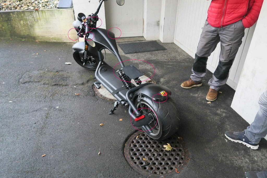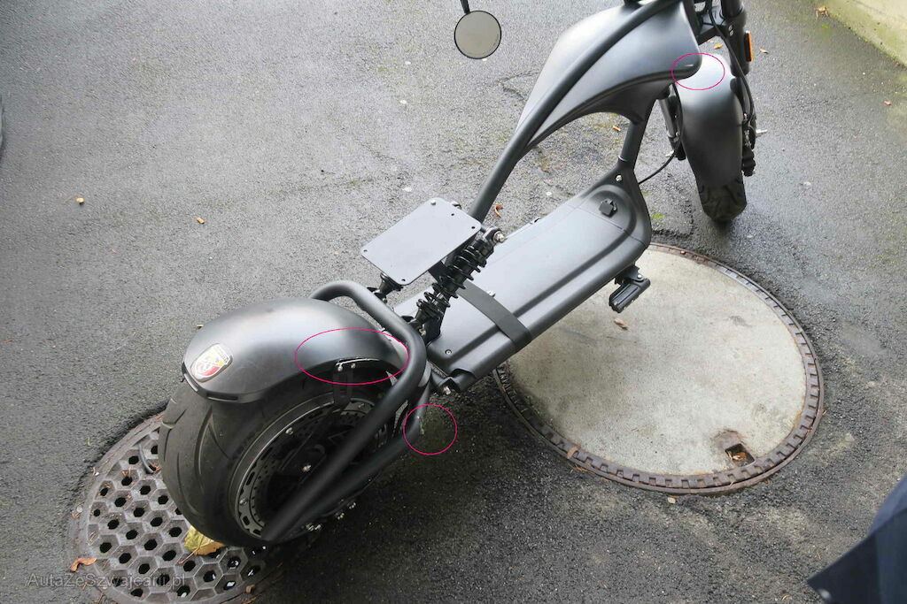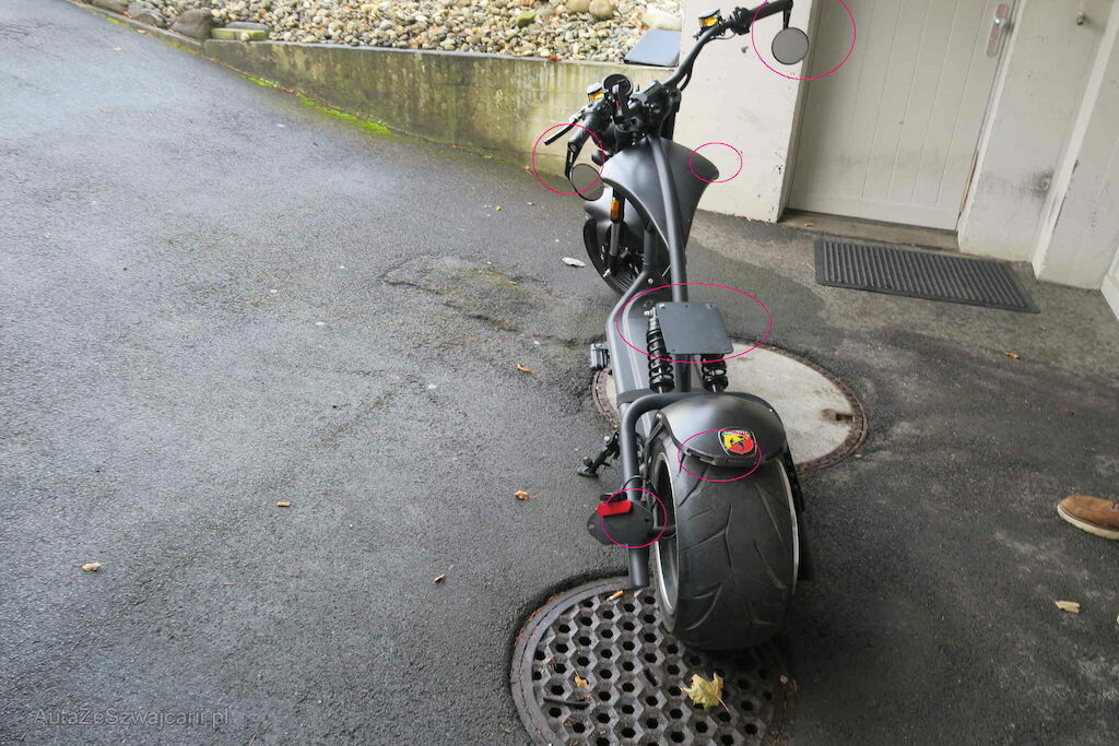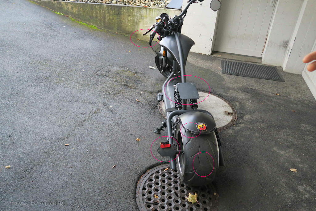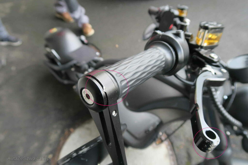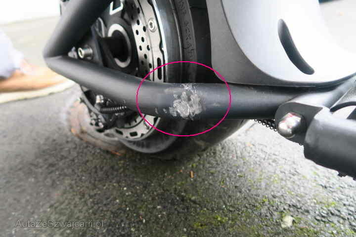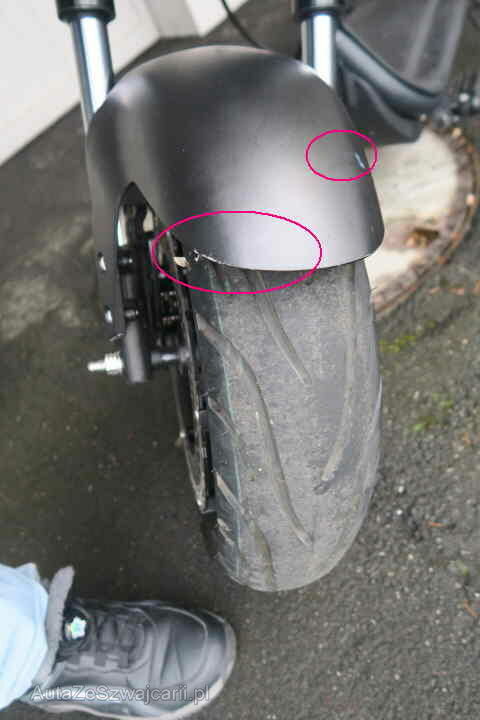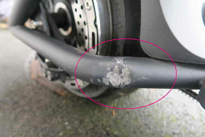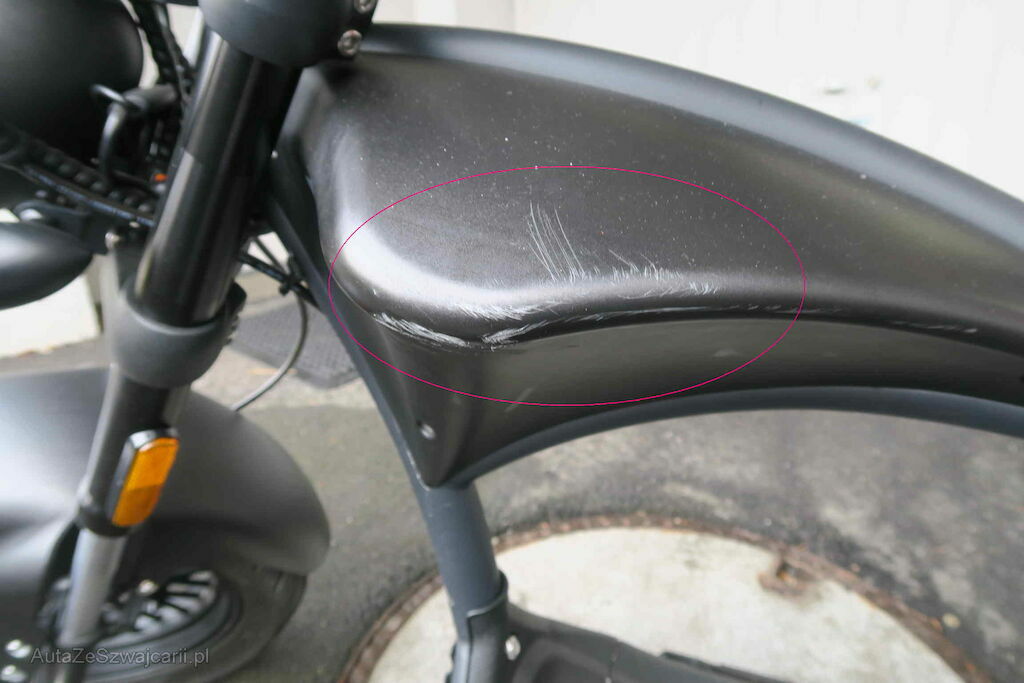 Schwinge eingedellt, Schutzblech, Rückleuchte, hinten, Fender vorne , Griffe und Spiegel l+r zerkratzt, Tankcover zerkrtatzt ll+r , Handyhalter gebrochen,Bremslicht gebrochen, Sitz fehlt