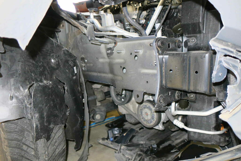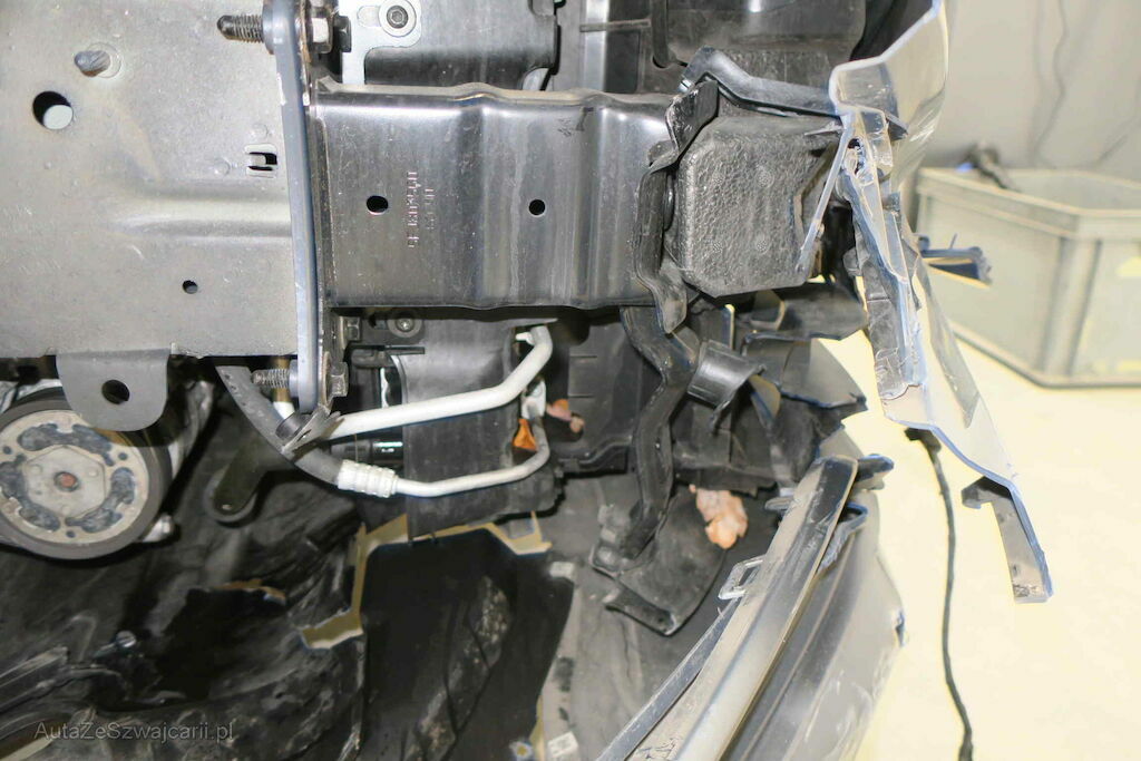 Front, Stossfänger, Balken, Scheinwerfer, Kühler, Kotflügel, Reifen, Felge, Antriebswelle, Achse, Aufhängung, Lenkung, Hilfsrahmen, Chassisholm vorne rechts beschädigt. Fahrer-, Knie- und Seitenairbag mit allen Gurtenstraffern ausgelöst.