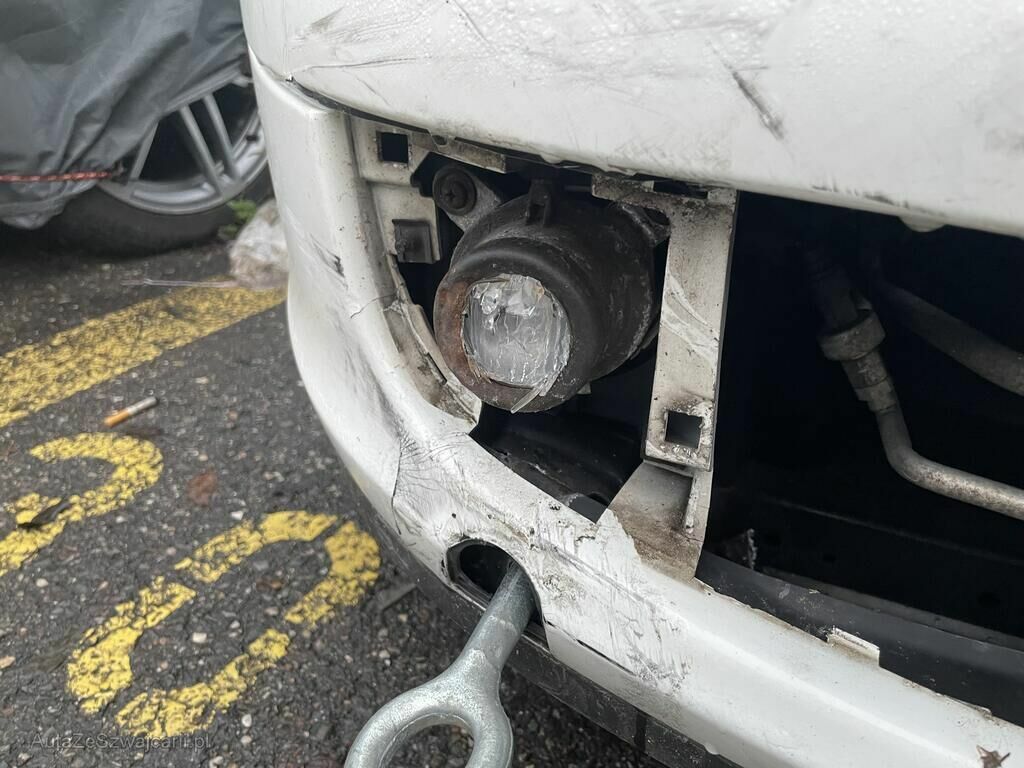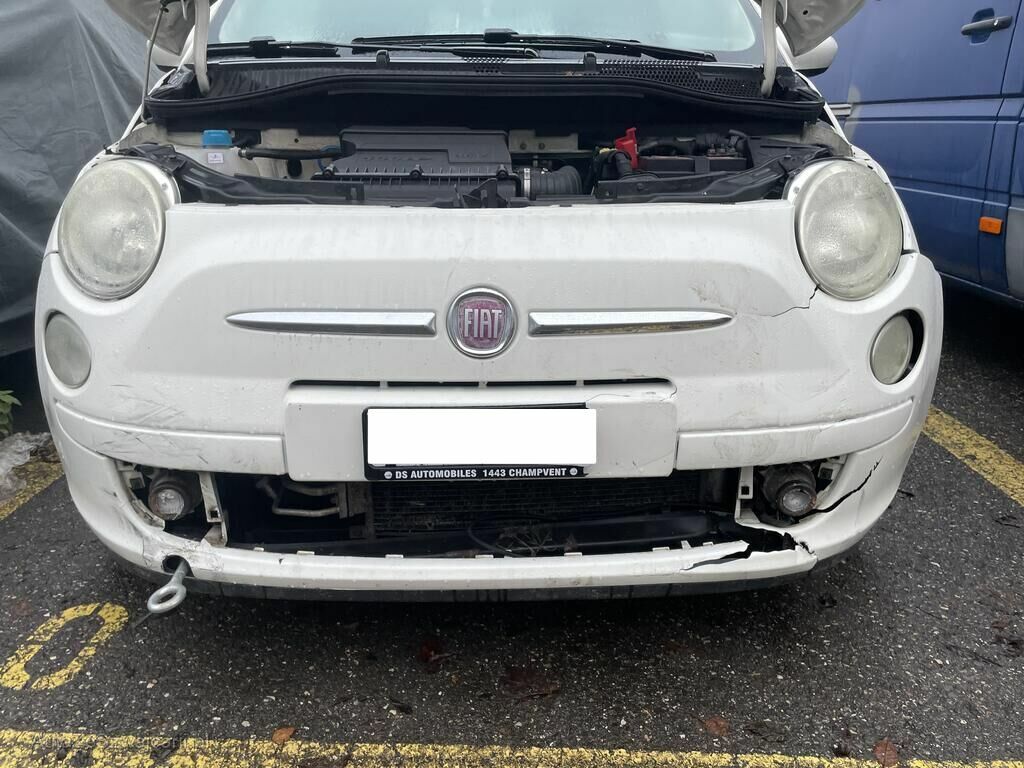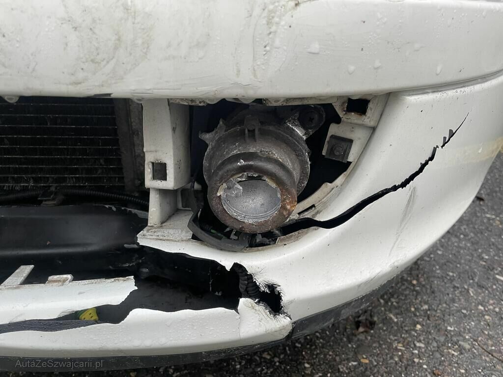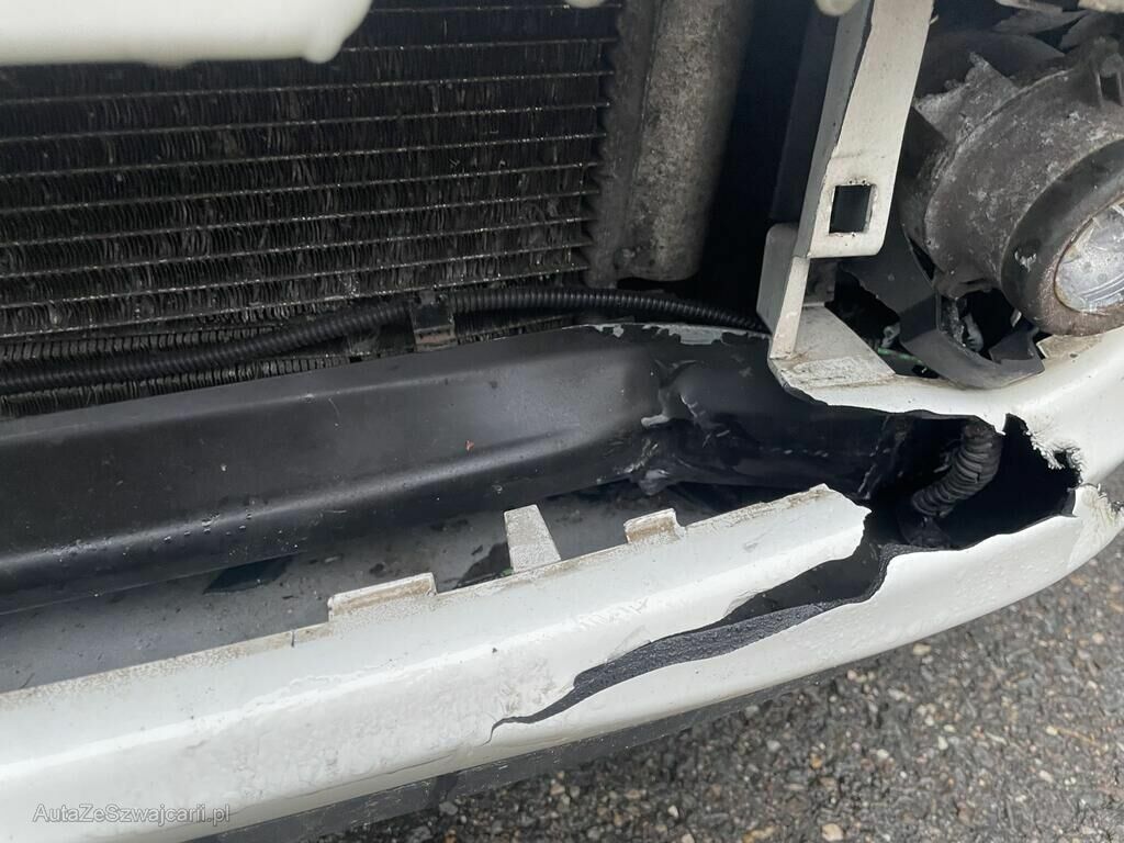 Pare-chocs, grille, phares, antibrouillard et condenseur endommagés.